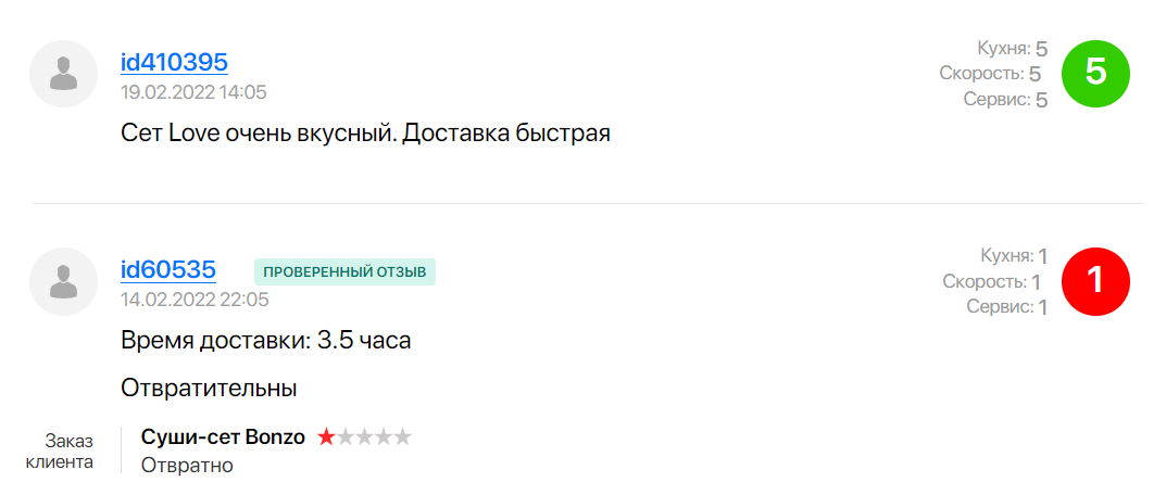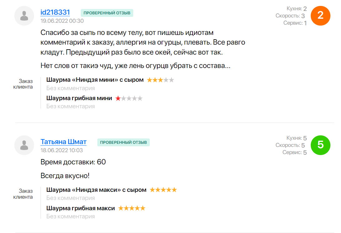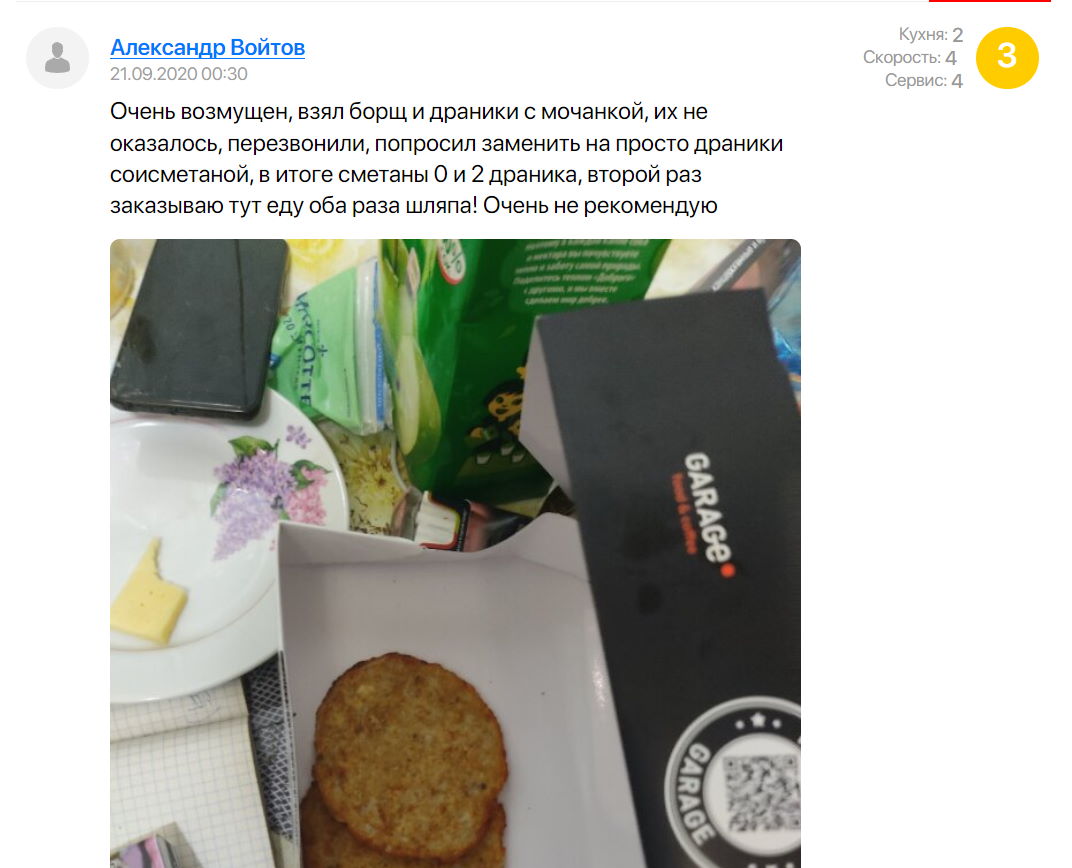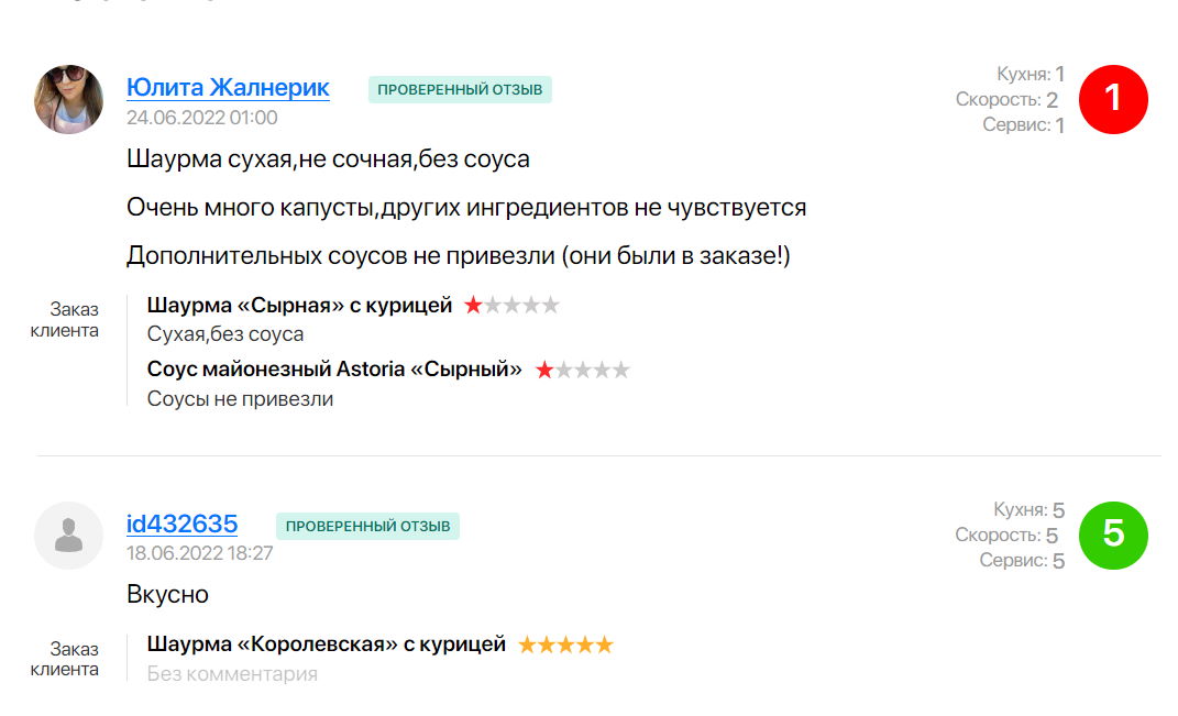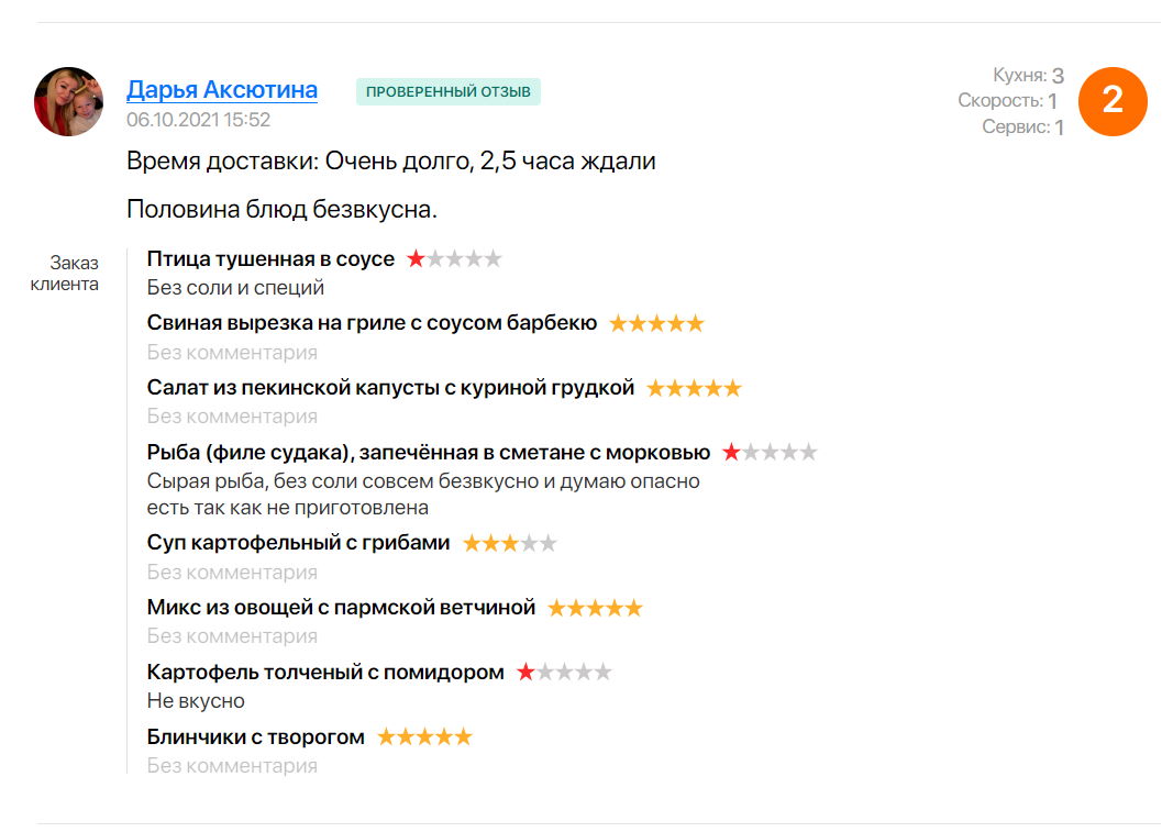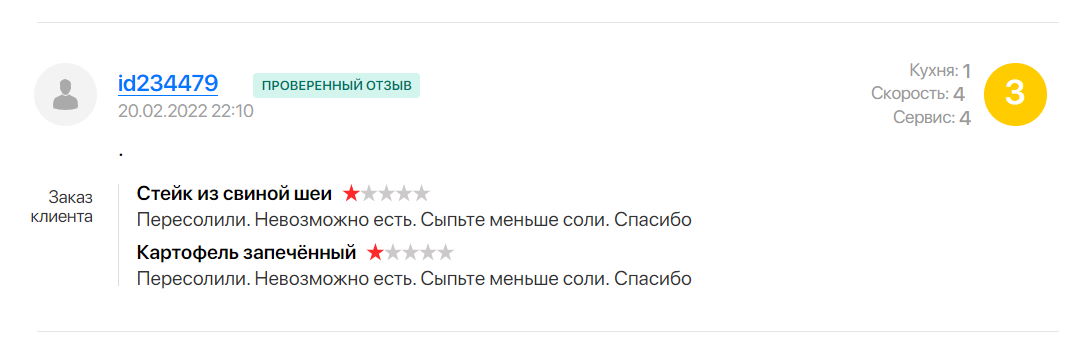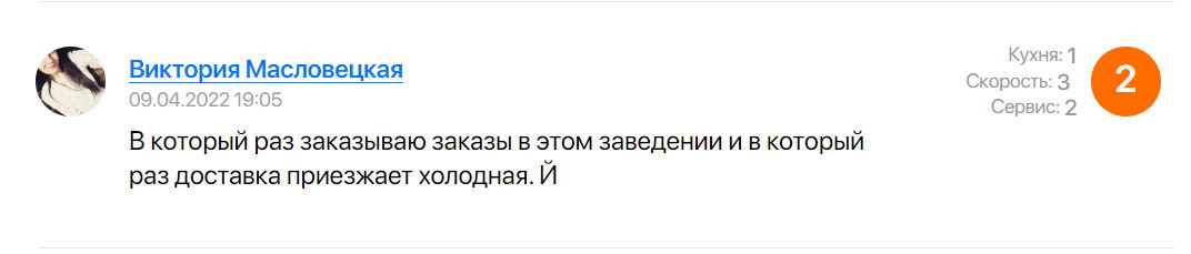 В подборку мы включили заведения, у которых более 100 комментариев. Среди них есть много положительных — и они однотипные. Для подборки мы отобрали комментарии с оценками 1-4 из 5, где детально описано, что не устроило заказчика.