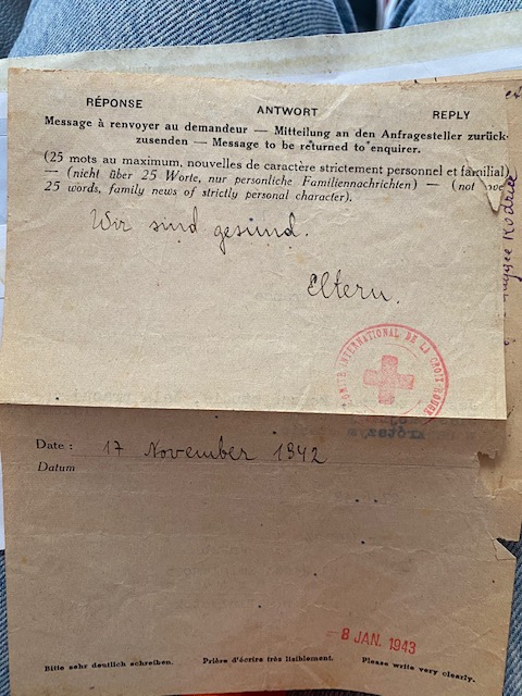В разгар войны, в июне 1942 года, Мирослава при помощи Красного Креста пыталась найти своих родителей. Она отправила телеграмму в Гродно на родительский адрес: «Я здорова, закончила учиться, Валь работает. Беспокоимся о Вас. Просим ответить в ближайшее время”. Но ответ так и не пришел.