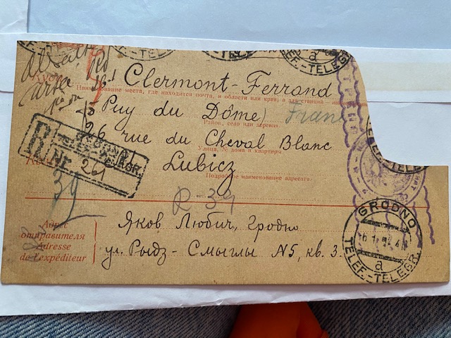 Из писем, которые обнаружила Изабель, понятно, что семья ее бабушки жила в Гродно на улице Рыдза Сьмиглэго (совр. Василька) в доме №5. Все письма во Францию были отправлены с этого гродненского адреса.