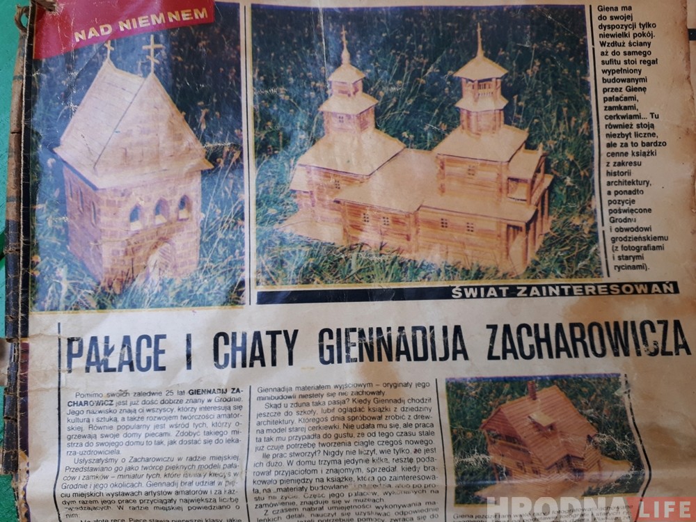 «Молодые гродненцы не хотят заниматься сегодня тем, чем я увлекся в свое время. Никогда на макетах толком не зарабатывал. А они на экспертами оценивались в большую сумму, но обычные люди этого никогда не понимали. Просили сделать, но никто не хотел платить. Всем кажется: взял и сделал за вечер макет. На самом деле на одну работу может уйти несколько лет. Свой самый тяжёлый проект церкви из дерева я делал 8 лет. Конечно, не каждый день делал, а вечерами, с большими перерывами».