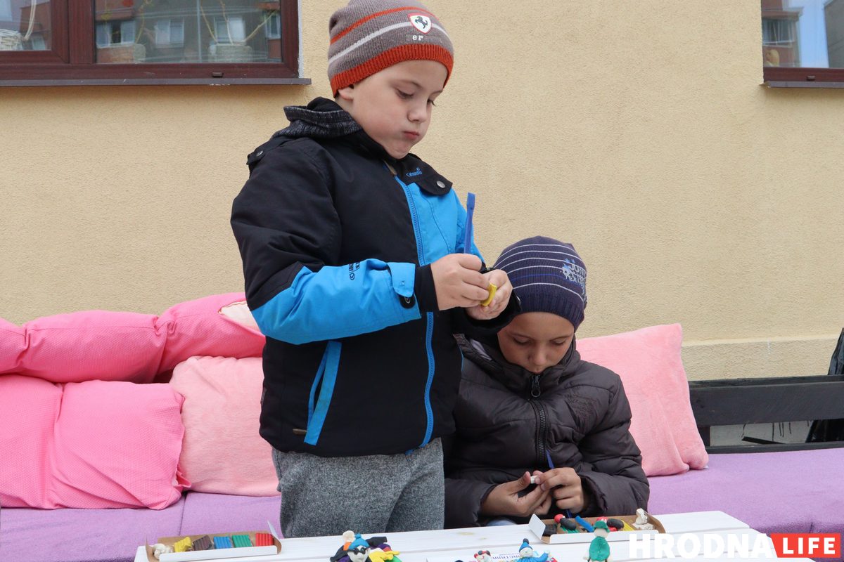 Родители с детьми слепили из пластилина себя и поучаствовали в лотерее. К детям приехали волонтеры-аниматоры, которые надували мыльные пузыри, делали фигурки из воздушных шариков и танцевали. С организацией праздника помогли магазин шариков Flyshop и кондитерская Ponchikoff.