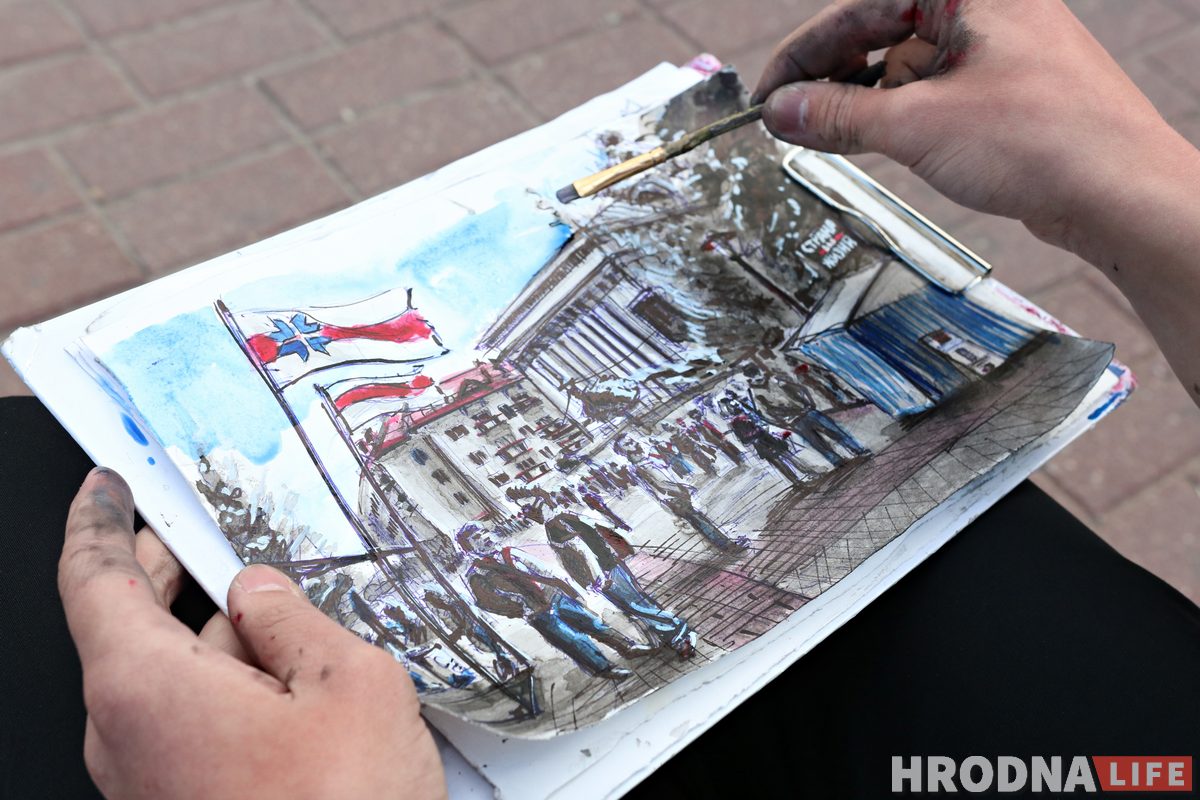 «Сегодня мы наблюдаем историческое событие, — говорит Ярослав. — Гродненцы делают свой выбор и поэтому я, как художник, решил запечатлеть этот момент. Я не хочу рассказывать про себя и свое отношение к политическим событиям в стране. Мое дело рисовать. Но я знаю, что сейчас происходит в Беларуси, поэтому готов продать картину и за вырученные средства помочь политическим заключенным».