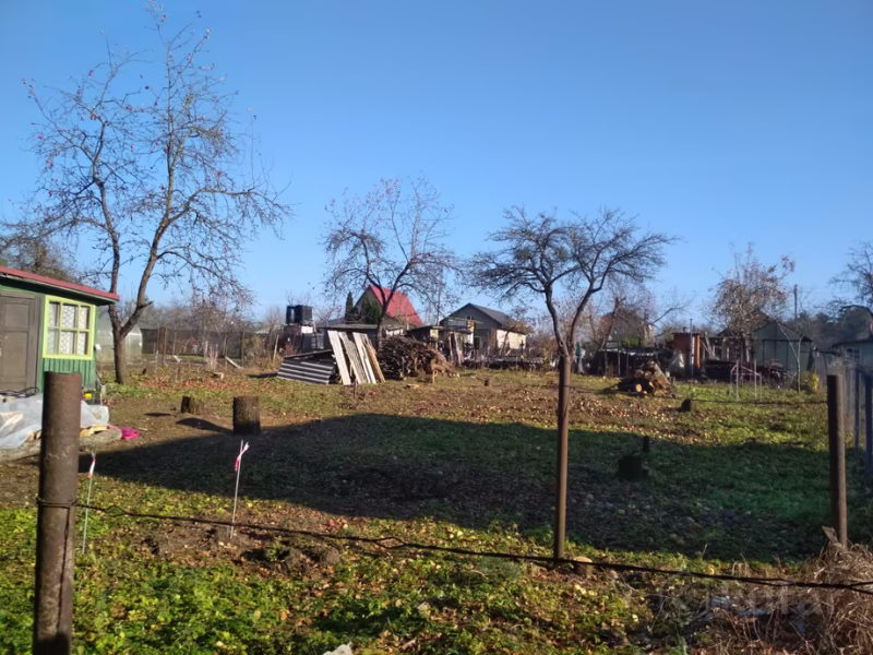 Участок с домом в садовом товариществе «Зарница» в 10 минутах езды от Южного рынка. На участке есть сад с яблонями, грушами, сливами, вишней, черешней, калиной. Растет красная и черная смородина, крыжовник, виноград. Деревянный домик небольшой — 18,8 кв.м, без отопления. Участок огорожен, есть хозяйственная постройка. Подведено электричество, а вода на участке — сезонная.