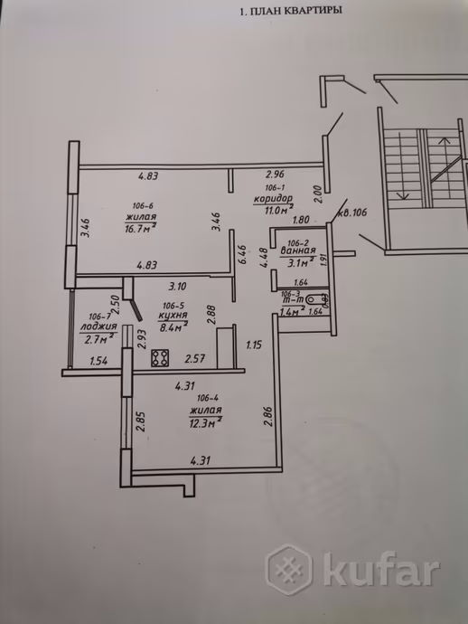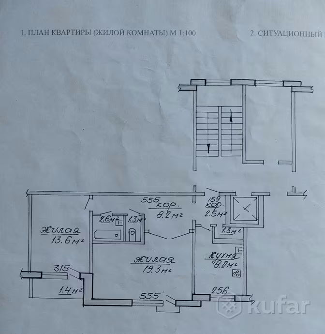 Квартира без ремонта по улице Поповича. Можно купить комнату 19,1 кв.м и комнату с лоджией 11,1 кв.м.