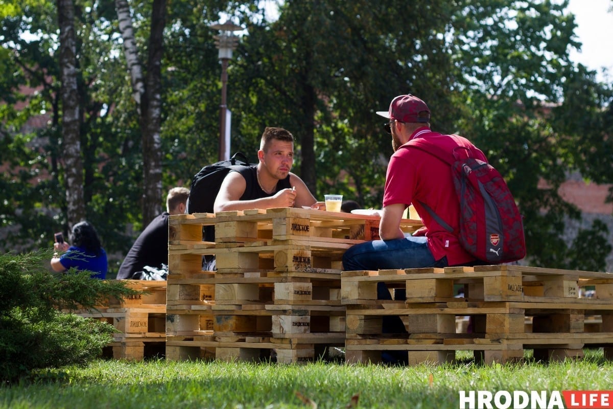 — Я с 10 часов не могу сходить в туалет, — улыбается Руслан. Он работает шеф-поваром в минском ресторане, а здесь подрабатывает с другом. — Очень трудно, людей много. Мы драники жарили — жаль, вы не застали, — колбаски, шышлык, ребрышки. Очень нравится Lidbeer. На одном из республиканских фестивалей недавно продажи были нулевые, вышли в минусы большие. А здесь я уже третий год и все классно, мне нравится.