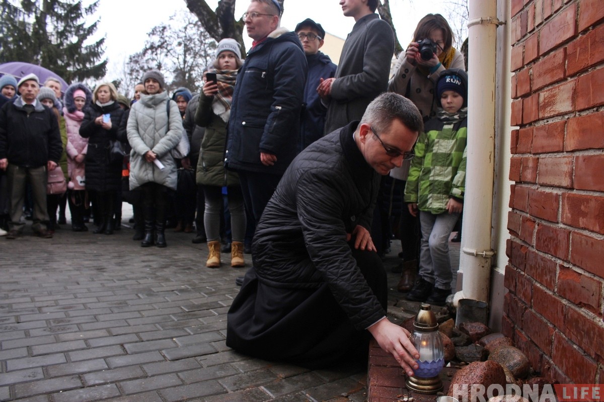 На Марш памяти пришло порядка 100 человек. Среди них были дипломаты, общественные деятели, священники, школьники, студенты и неравнодушные к истории города гродненцы. Были и потомки узников гетто, среди них глава Гродненской иудейской общины Борис Квятковский. Год назад на памятное мероприятие он приходил с портретом своего отца Мотла Янкелевича, который был родом из Сопоцкина. В этом году по состоянию здоровья он пришел без него.