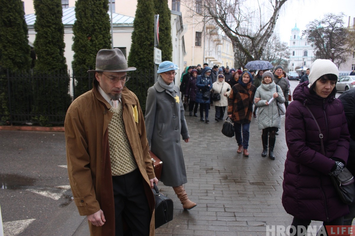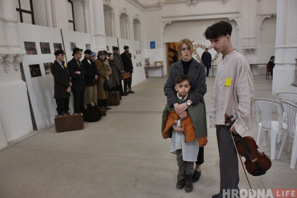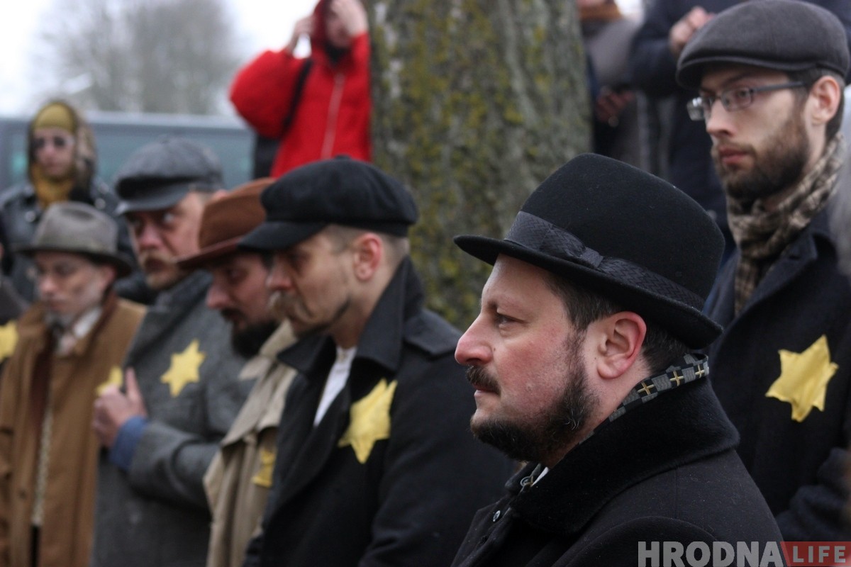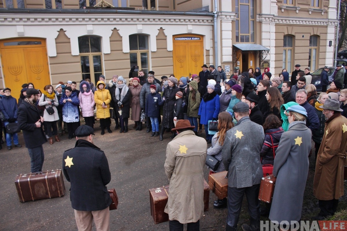 Участие в памятном мероприятии приняли актёры гродненского фрик-театра «Гексоген». В 2019 году это уже второе костюмированное представление по теме трагедии евреев Гродно. Ребята делают это на добровольных началах, главная задача актеров — показать трагедию и в каких условиях оказались гродненские евреи во время Второй мировой. В конце войны из 29 000 гродненских евреев в живых осталось около 300 человек. В родной город вернулись лишь несколько десятков.