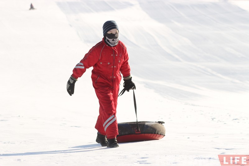 В «Олимпе» есть 150 тюбингов, которые можно арендовать на любое время. Но многие приезжают на горку со своими «ватрушками». Так сделали Дмитрий и Ольга, которые приехали на горку с детьми.