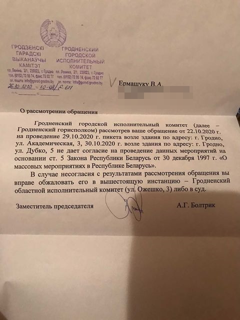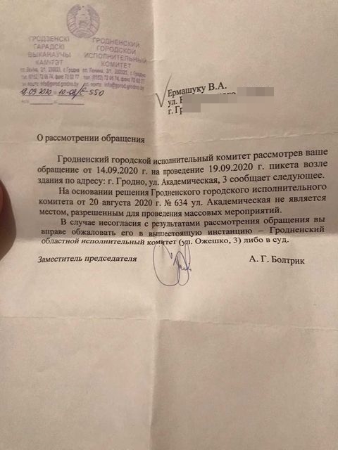 Городские власти отказали в проведении пикетов и гродненскому блогеру Вадимати (Вадим Ермошук). После выборов 2020 года он три раза подавал заявку в горисполком на пикет, но везде получил отказы.
