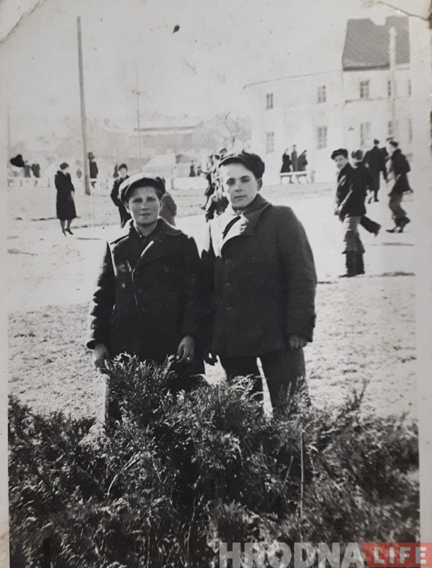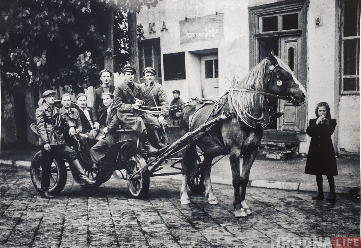 В семье Владимира сохранился интересный снимок парней с Переселки в послевоенные годы в центре Гродно на дорожке (повозке). По парням видно, что они чувствовали себя в городе комфортно.