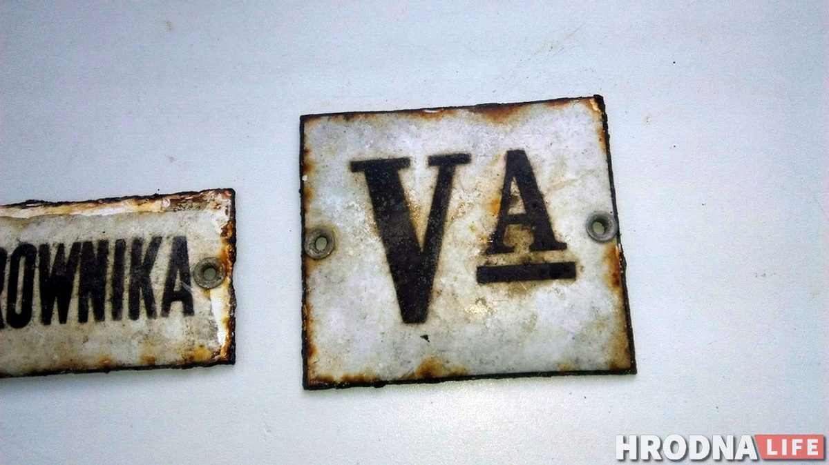 На одной из табличек написано «V a» (5 «А») — так обозначали классы в 1930-40-х. На другой табличке надпись: «Kancelaria Kierownika» (канцелярия управляющего). Таблички, вероятно, висели в школе до сентября 1939 года, пока Западная Беларусь не была захвачена советскими войсками.