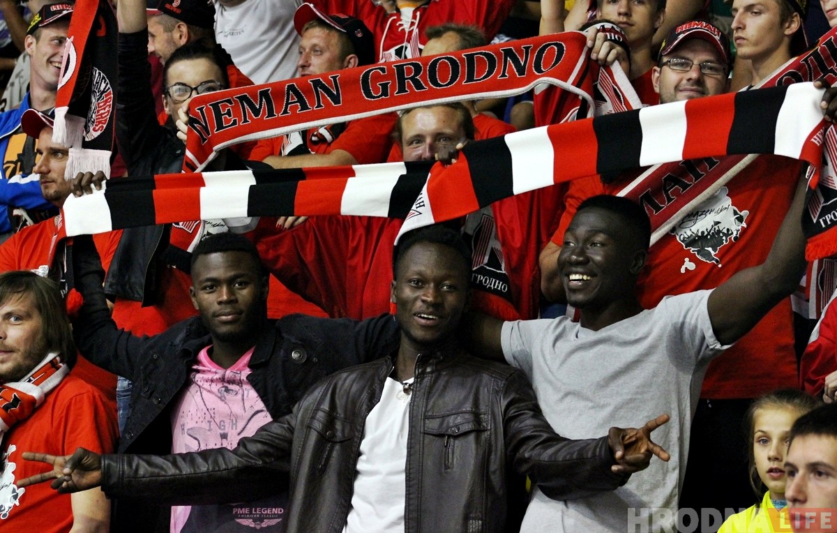 Студенты приходят на матчи «Немана» в Гродно уже в третий раз и идут именно на фанатский сектор, чтобы максимально ощутить хоккей. Африканских студентов на секторе уже знают и тепло принимают. Там говорят: «Мы красные, а они черные — и вместе мы «Неман».