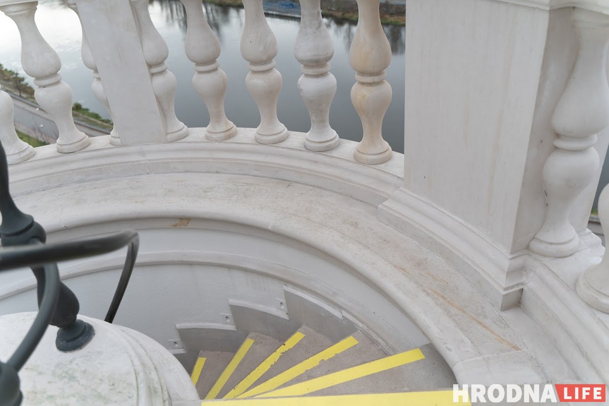 Подняться на обзорную площадку девушка хоть и с трудом, но смогла — поручень оказался справа. А вот спускаться назад было страшно — левой рукой Валерия почти не владеет, а поручня рядом уже нет. “Здесь не такие высокие ступеньки, но лестницы очень крутые и поручень есть только с одной стороны”, — рассказала она Hrodna.life. — Становится страшно спускаться вниз, а держаться не за что, не хватает поручня со второй стороны”.