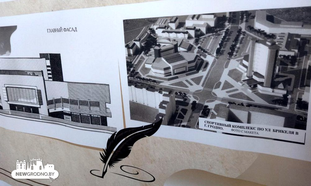 Многофункциональный спортивный комплекс сейчас планируют строить на выезде из Гродно, рядом с трассой М6. Но раньше много раз его места его расположения менялось. Изначально его планировали построить на улице Брикеля — напротив сегодняшнего торгового центра OldCity. Сейчас на этом месте располагается общежитие Гродненского государственного университета имени Янки Купалы.