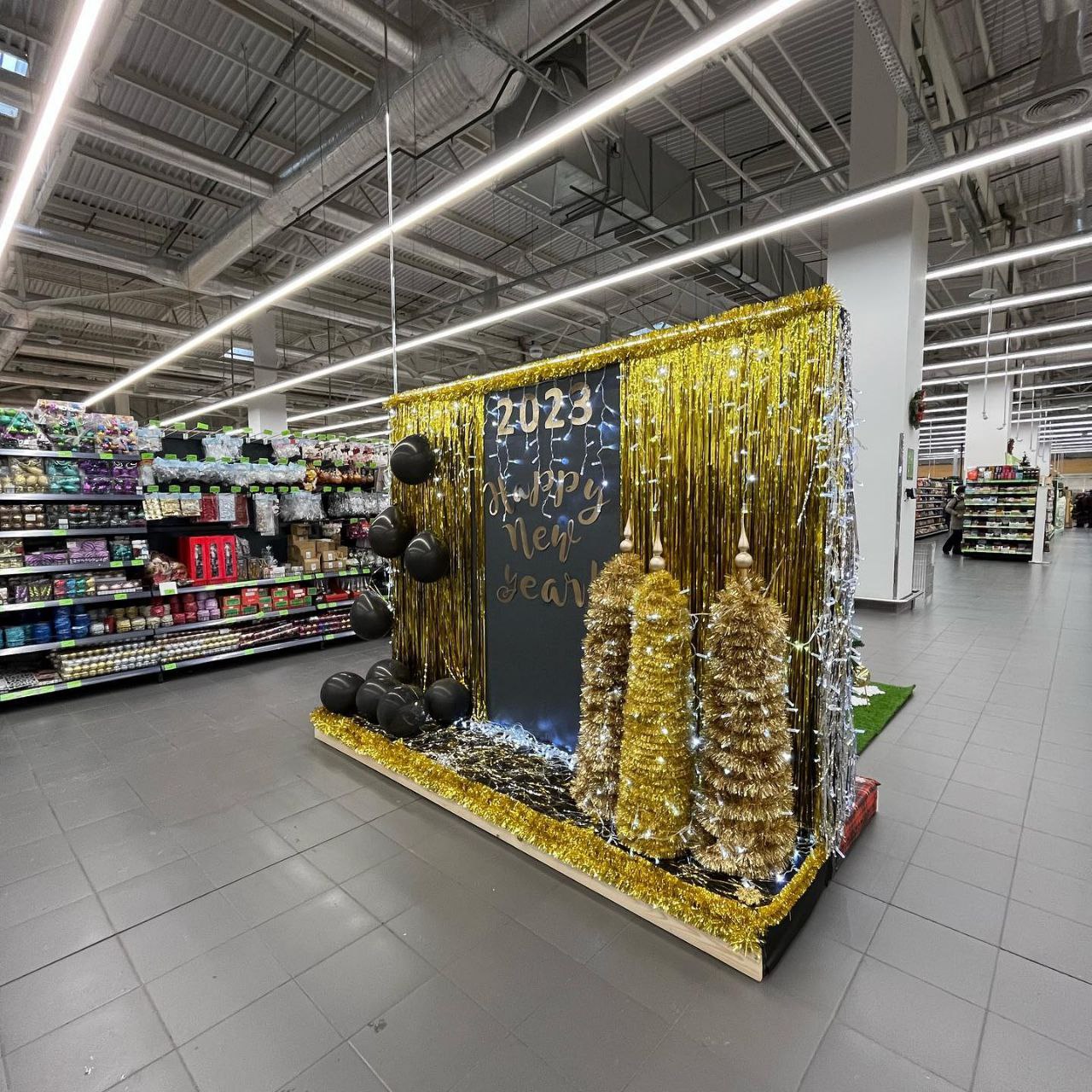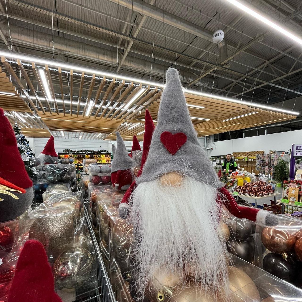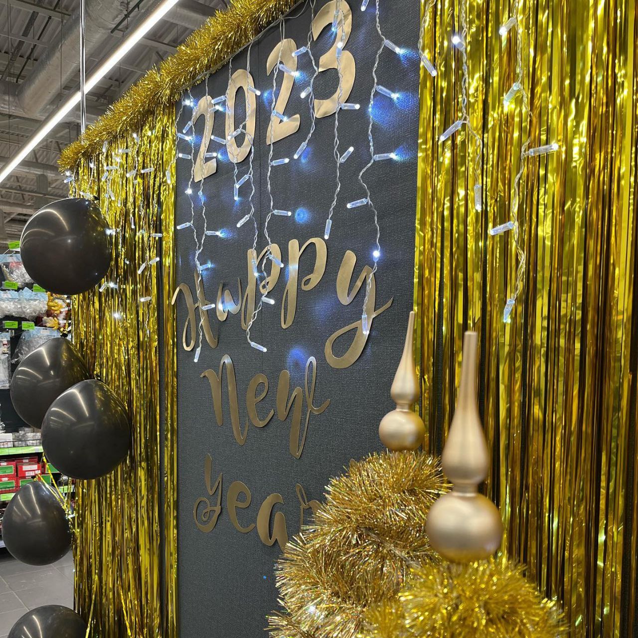 Белые зайцы и мишура в продуктовом