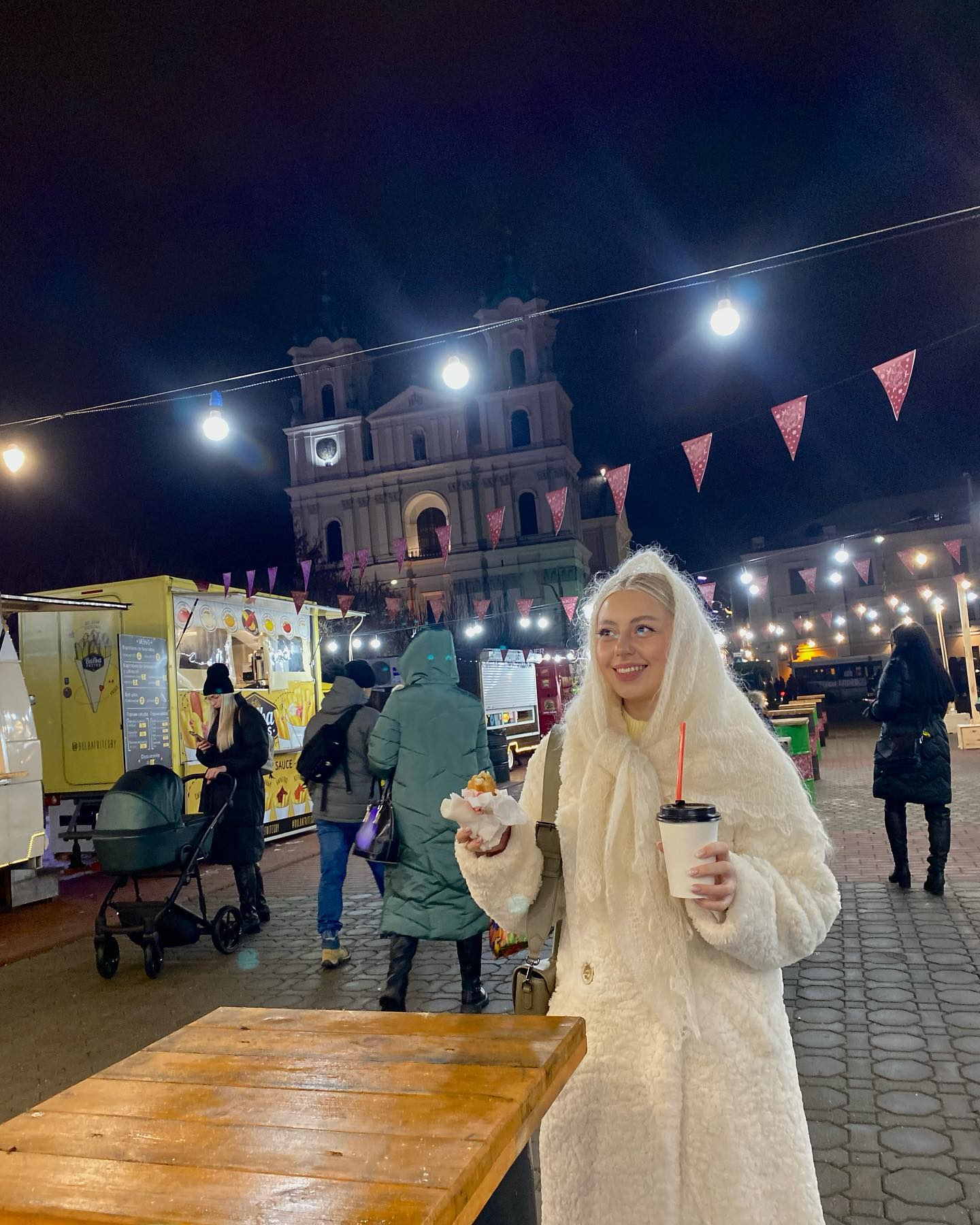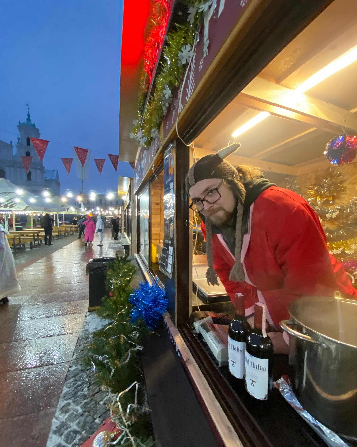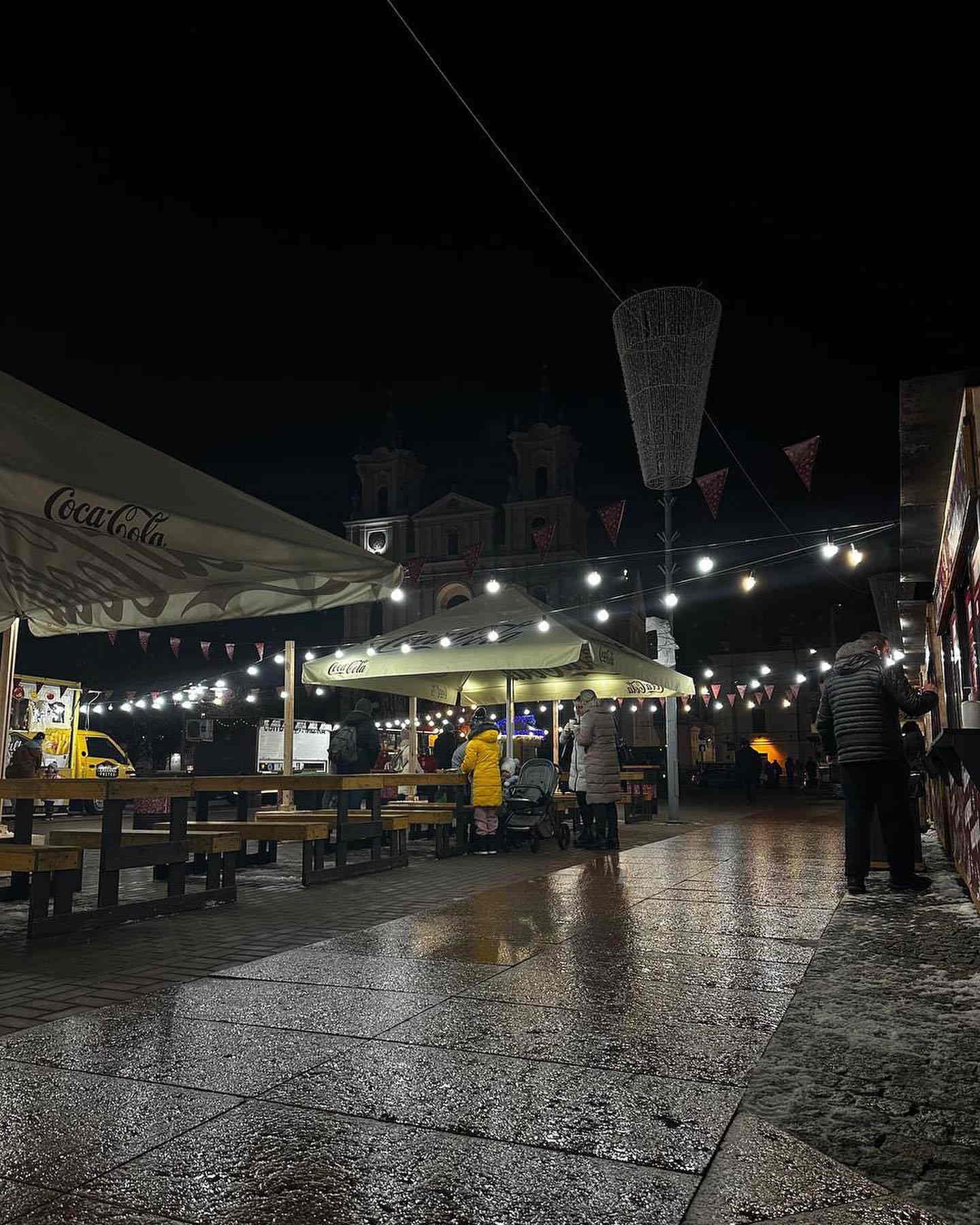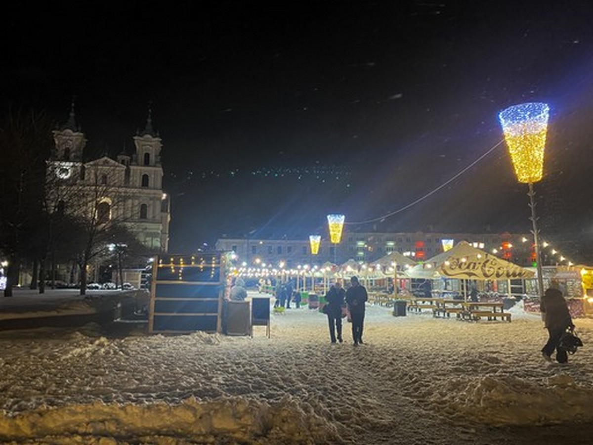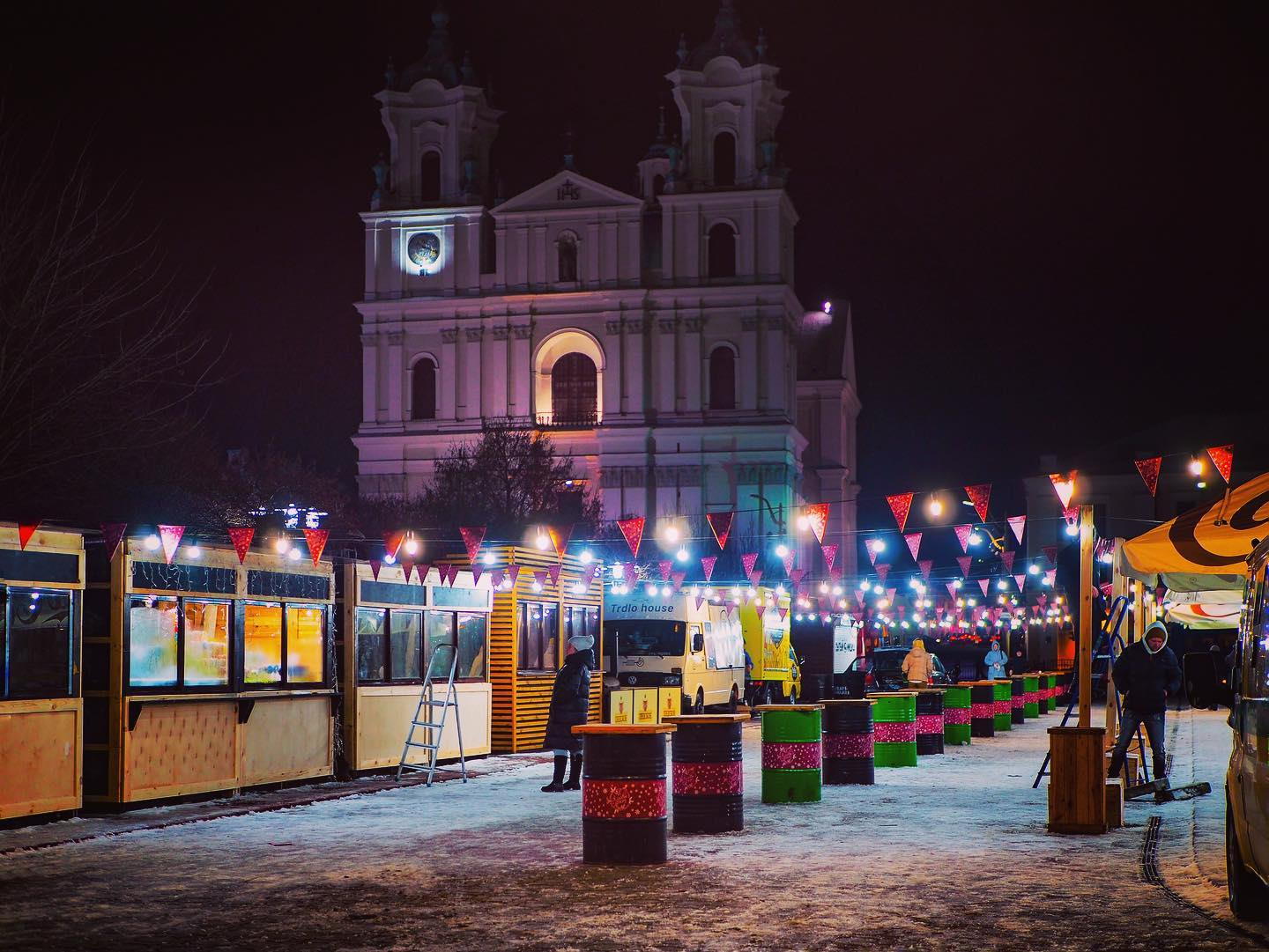 На Советской площади разместилась новогодняя ярмарка, где можно выпить глинтвейна или купить изделия ручной работы — сережки, магниты с рисунками Гродно, шапки, шарфики и перчатки. Instagram-страничка “Зімовага фэста” обещает гостям “настоящие” рождественские пряники и леденцы, медовые коробочки и фигурки-свечи.