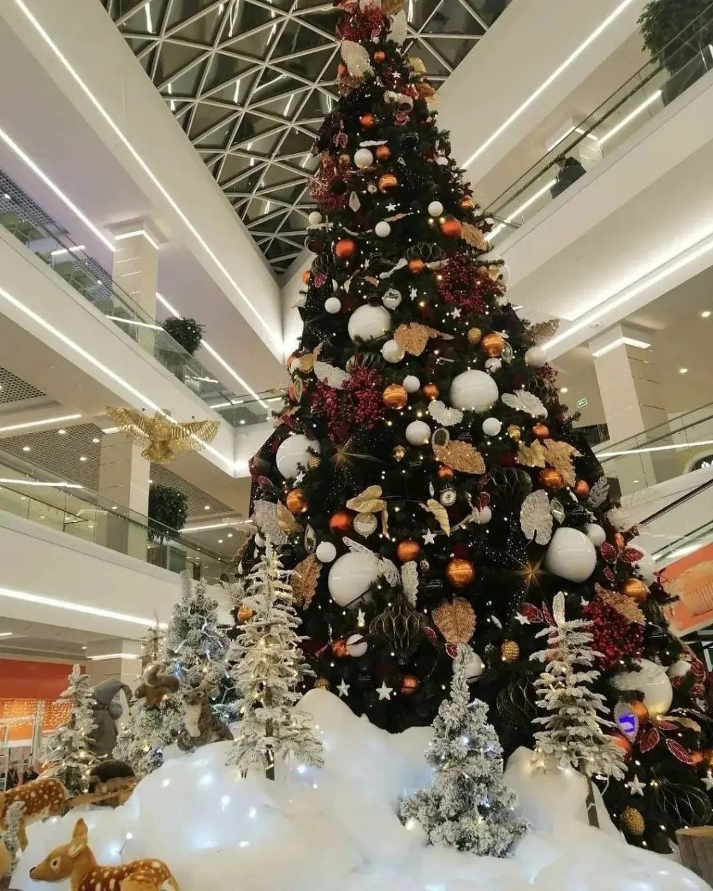 В Old City установили фотозону для покупателей в виде камина и двух белых зайцев. В торговом центре “Корона” елку украсили новогодними игрушками. И елки, и игрушки продаются.