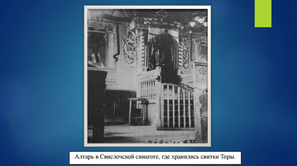Гістарычная даведка. Будынак сінагогі адзначыўся ў гісторыі Свіслачы і ў канцы вайны. На ім 17 ліпеня 1944 года савецкія салдаты ўзнялі сцяг перамогі ў гонар вызвалення Свіслачы.