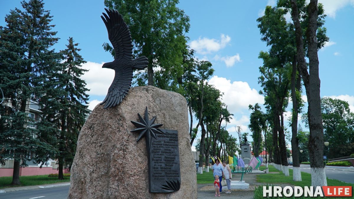 Праваруч ад плошчы – «алея герояў». Яе адкрывае помнік воінам і партызанам, што загінулі ў Другой сусветнай.