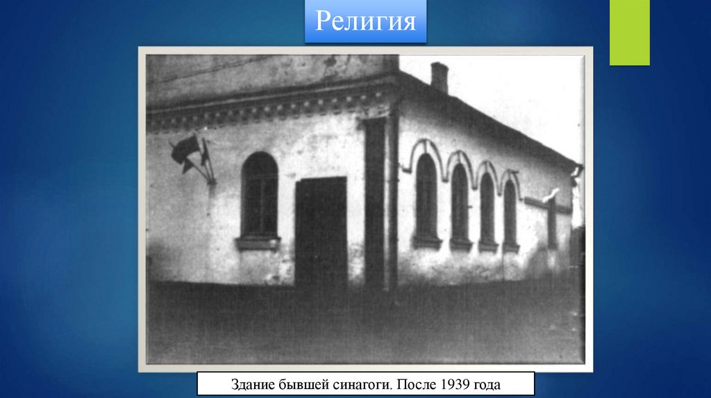 Сінагога канца XIX — пачатку XX стагоддзя знайшлася ў выглядзе Сектара па працы з дзецьмі і моладдзю. Зараз яе цяжка пазнаць.