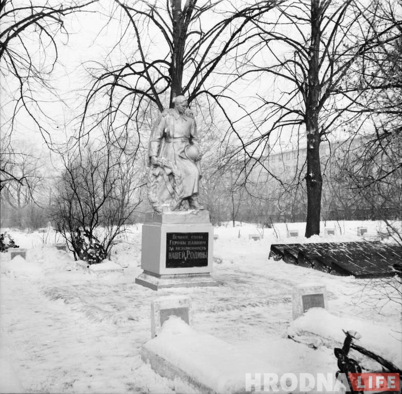 Первые настоящие памятники советским солдатам появились в Гродно во второй половине 1950-х гг. Это были скромные надгробия с фигурами солдат, которые поминают погибших друзей, или с фигурами женщин и даже детей, которые чтят память своих мужей и отцов. Тогда же было разрешено чтить память военнопленных. Соответствующие мемориалы появились на военном кладбище.