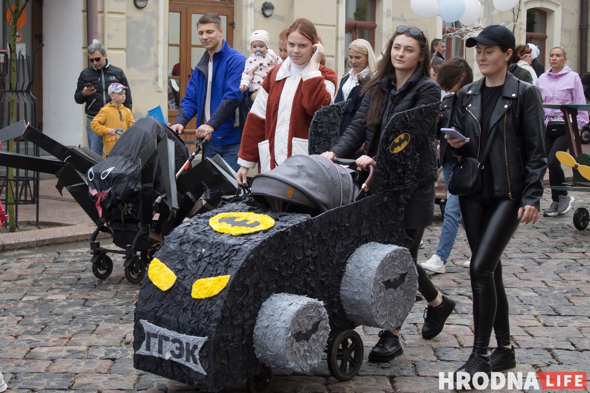 Корреспондентка Hrodna.life увидела в колонне бэтмобиль, воздушный шар, жар-птицу и даже мобильный телефон. В этом году наблюдалось немало колясок и костюмов в “пчеловом” стиле.