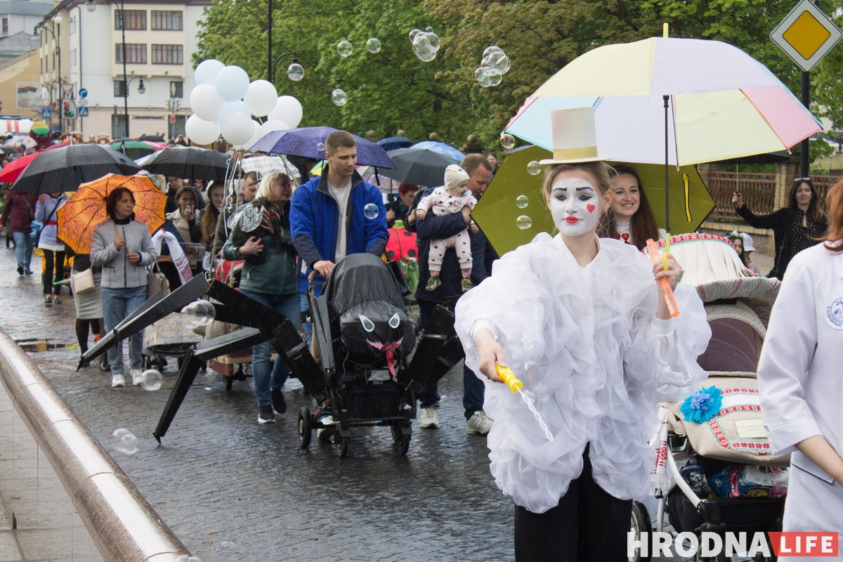 Коляски с декором, девушки с куклами-младенцами, духовой оркестр и лимузин — всё это увидели гродненцы 14 мая на параде колясок “Под парусом любви”, посвящённом Дню семьи. С декорированными колясками на праздник пришли около 60 семей. Они представляли организации города и учреждения образования. Колонна прошла от Советской площади до парка Жилибера, где был концерт и торжественное награждение участников.
