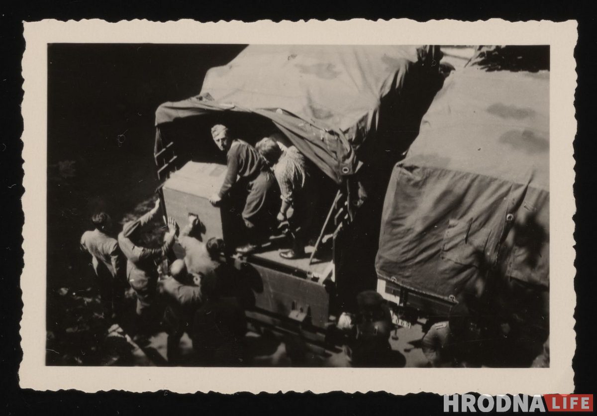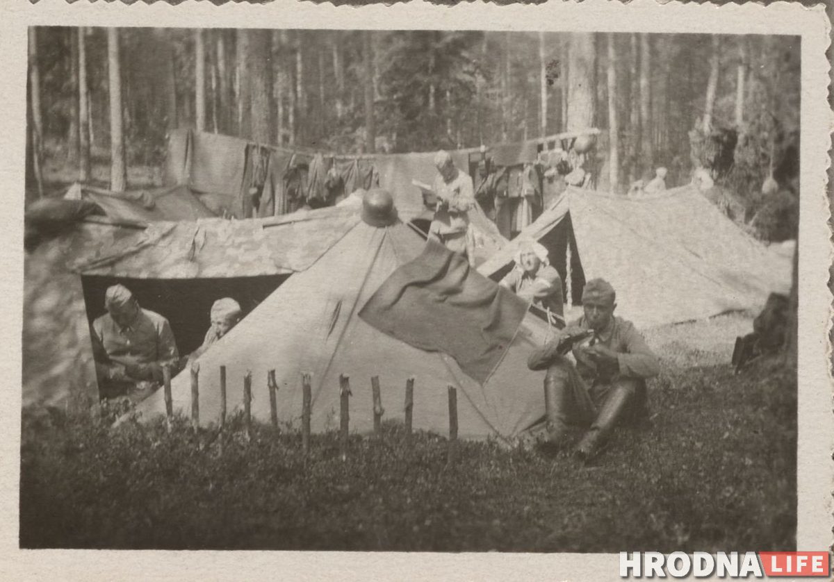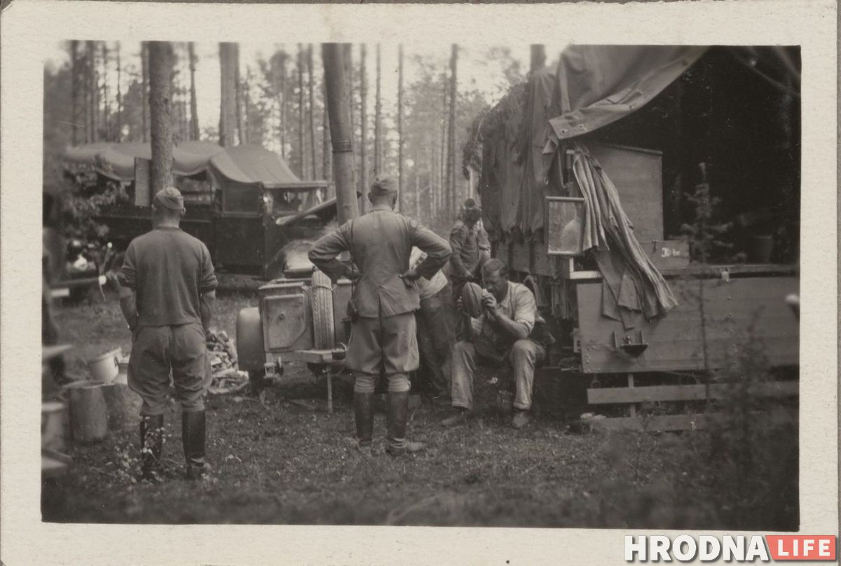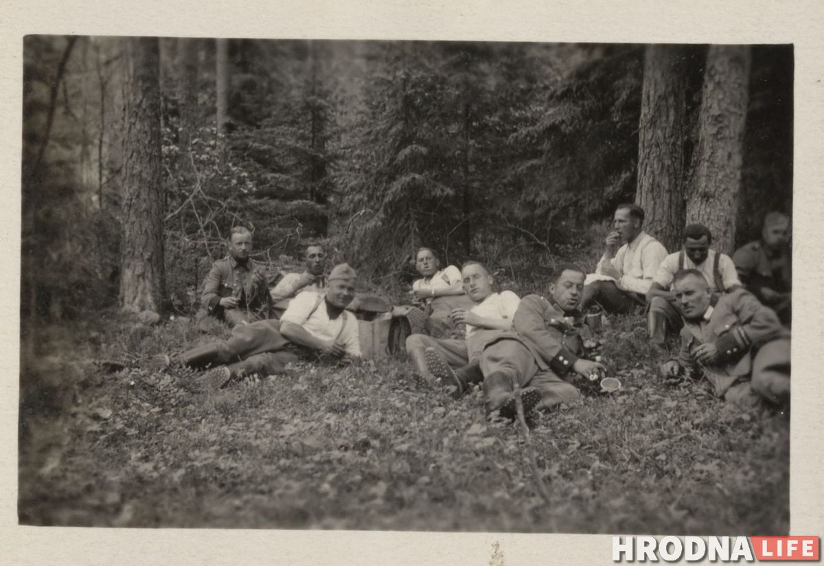 Часть фото сделана в июне 1941 года, перед вторжением Германии в СССР. Батальон Йозефа Баура находился в лесу у деревни Гибы (70 км от Гродно). 22 июня Германия нападет на СССР, а 24 июня немецкие войска уже будут в Гродно.