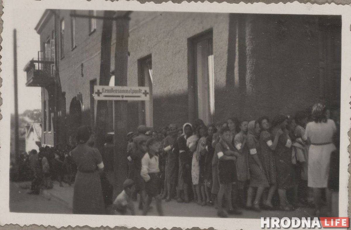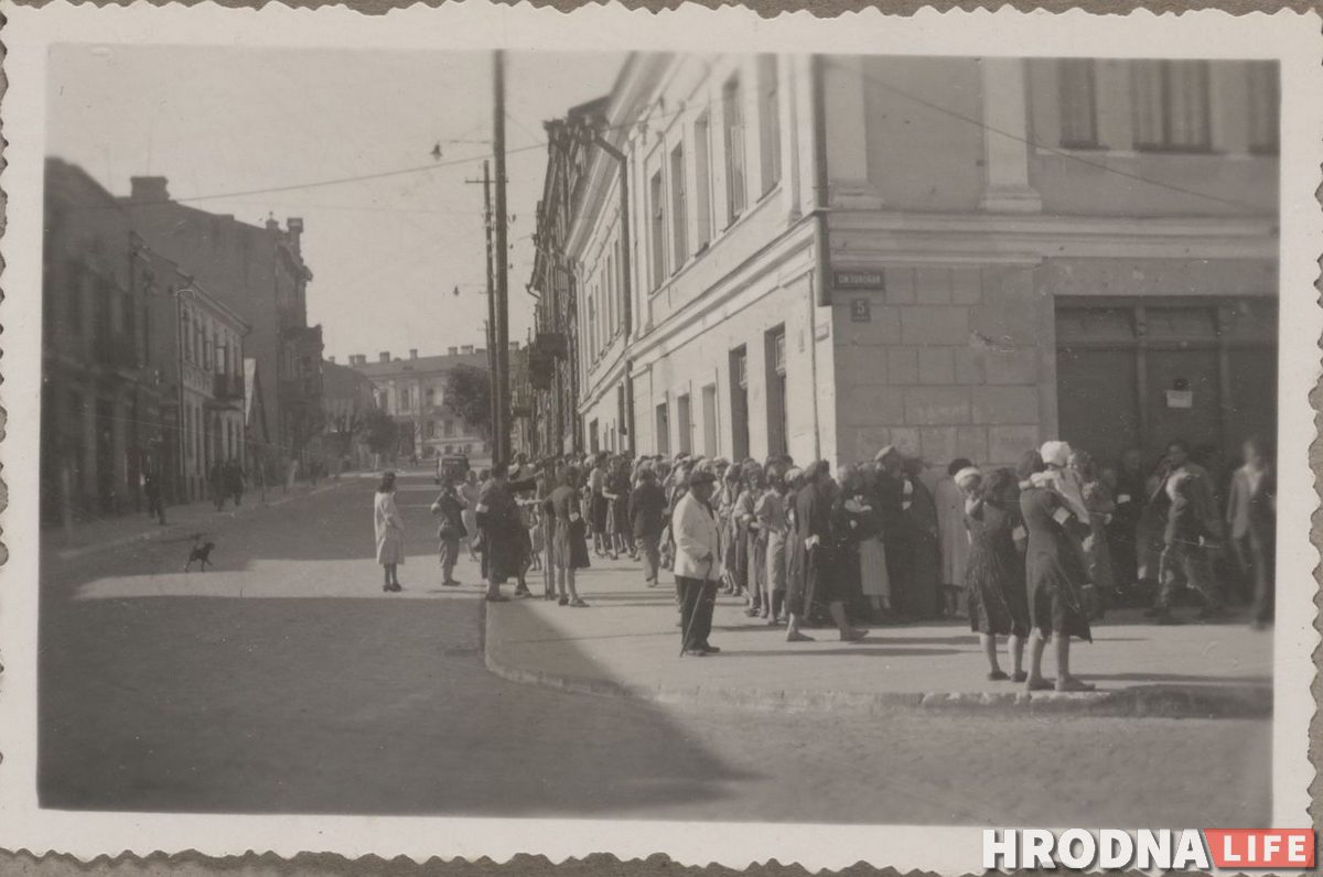 Еврейки стоят в очереди в центре Гродно