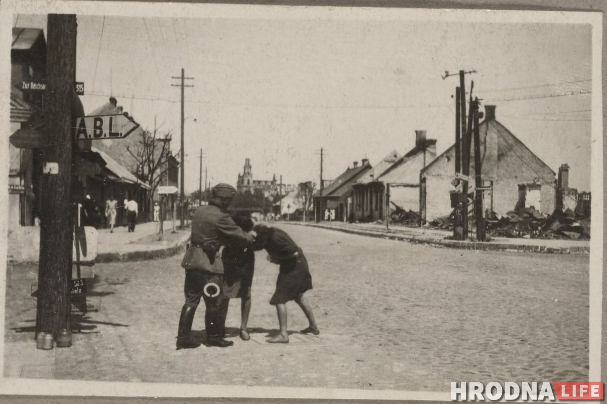 В архивах американского Музея холокоста находится альбом немецкого полицейского Йозефа Баура. В июне 1941 года в составе своего подразделения он оказался в Гродно и снимал происходящее на свой фотоаппарат. На уникальных снимках можно увидеть разрушенный город в первый месяц войны Германии и СССР, очереди из евреев, службу в Фарном костеле и многое другое. Hrodna.life публикует фотографии с описаниями событий.