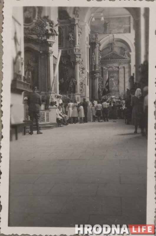 На снимках Йозефа Баура можно увидеть службу в Фарном костеле. По воспоминаниям старожилов, для немецких солдат служба проходила отдельно.