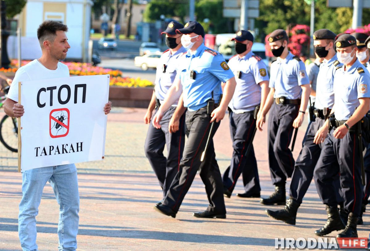 Парень вышел в центр города с плакатом и простоял меньше минуты — его почти сразу задержали. В изоляторе временного содержания (ИВС) на Гая гродненец пробыл трое суток и получил штраф – 20 базовых. Свою историю Александр рассказал Hrodna.life.