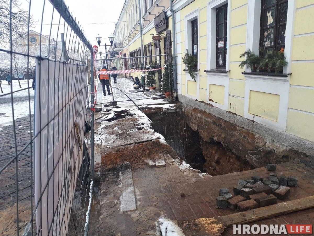 29 января рабочие начали разбирать тротуар возле магазина “Ратушный” . В начале февраля они пробили дополнительный вход в старинный подвал. Владелец будущего кафе говорит, что на эти работы он получил все необходимые документы.