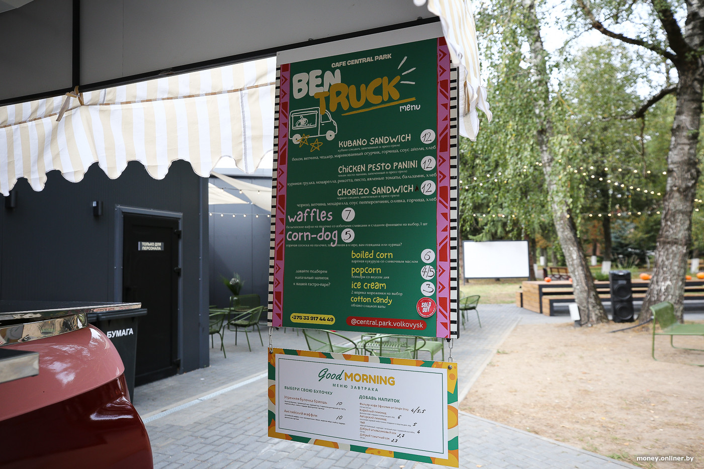 Так в парке появился бус, которого пара назвала Беном — его используют в качестве стойки для летнего кафе. Достать Бена было непросто, Евгению пришлось мониторить объявления на сайтах, чтобы найти подходящую ретро-машину. Остановился Евгений на ГДРовском Barkas B1000 — раньше из точно таких же бусов в Гродно сделали два фудтрака.