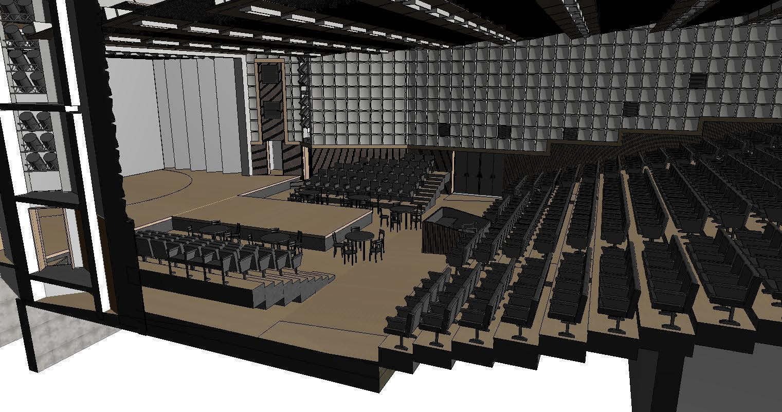 - пракладка камунікацый для падлучэння тэхналагічнага абсталявання сцэны і залы,