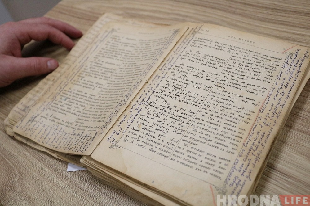 Год назад настоятель Свято-Покровского собора Георгий Рой обнаружил в приходской библиотеке Евангелие, которое было исписано от руки историями из жизни гродненской семьи Раевских. Записи в книге продолжались в течение 60 лет. Сегодня священник хотел бы найти потомков Раевских и передать им ценную семейную реликвию.