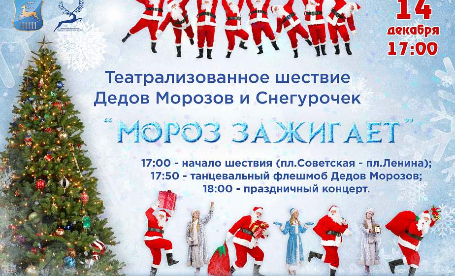 17.00 — Театрализованный пролог с прибытием главного Деда Мороза и Снегурочки на пл. Советскую.