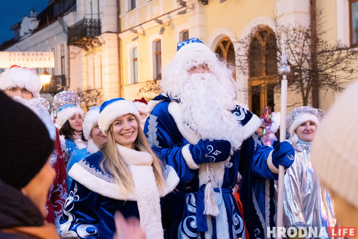 Главные герои Нового года стартуют в 17.00 от площади Советской. Они пройдут по улице Советской до площади Ленина, где состоится танцевальный флешмоб Дедов Морозов, праздничная концертная программа от артистов Гродненского городского центра культуры и школы танцев города Гродно — DancestudioIMPULSE.