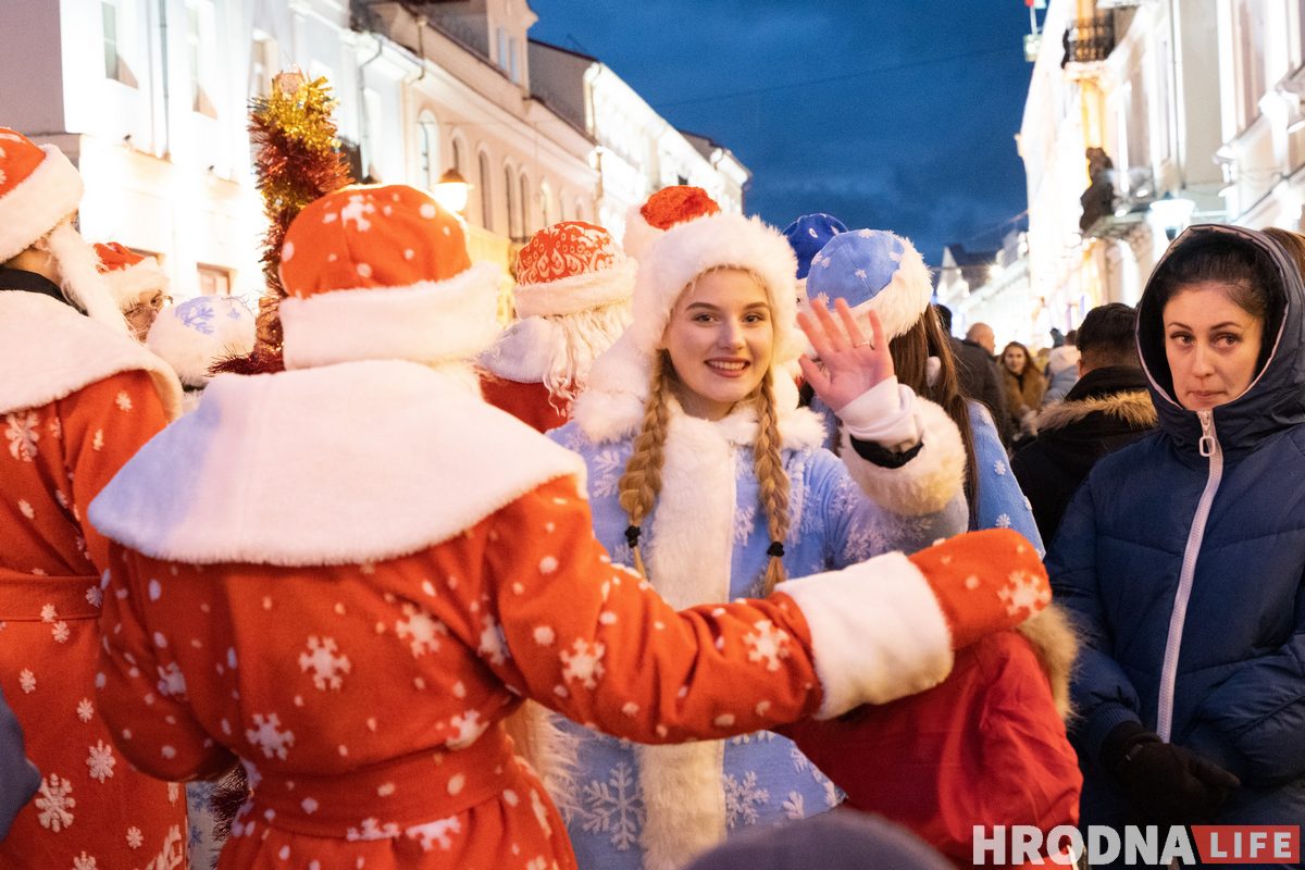 В анонсах обещали, что обычный хоровод вокруг елки в этом году заменят оригинальным флешмобом, но ни корреспондентка Hrodna.life, ни участники шествия, с которыми она поговорила, флешмоба не заметили.