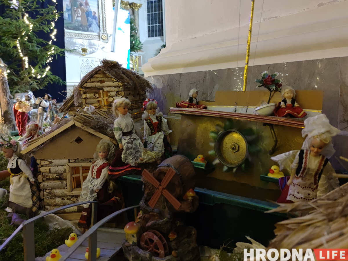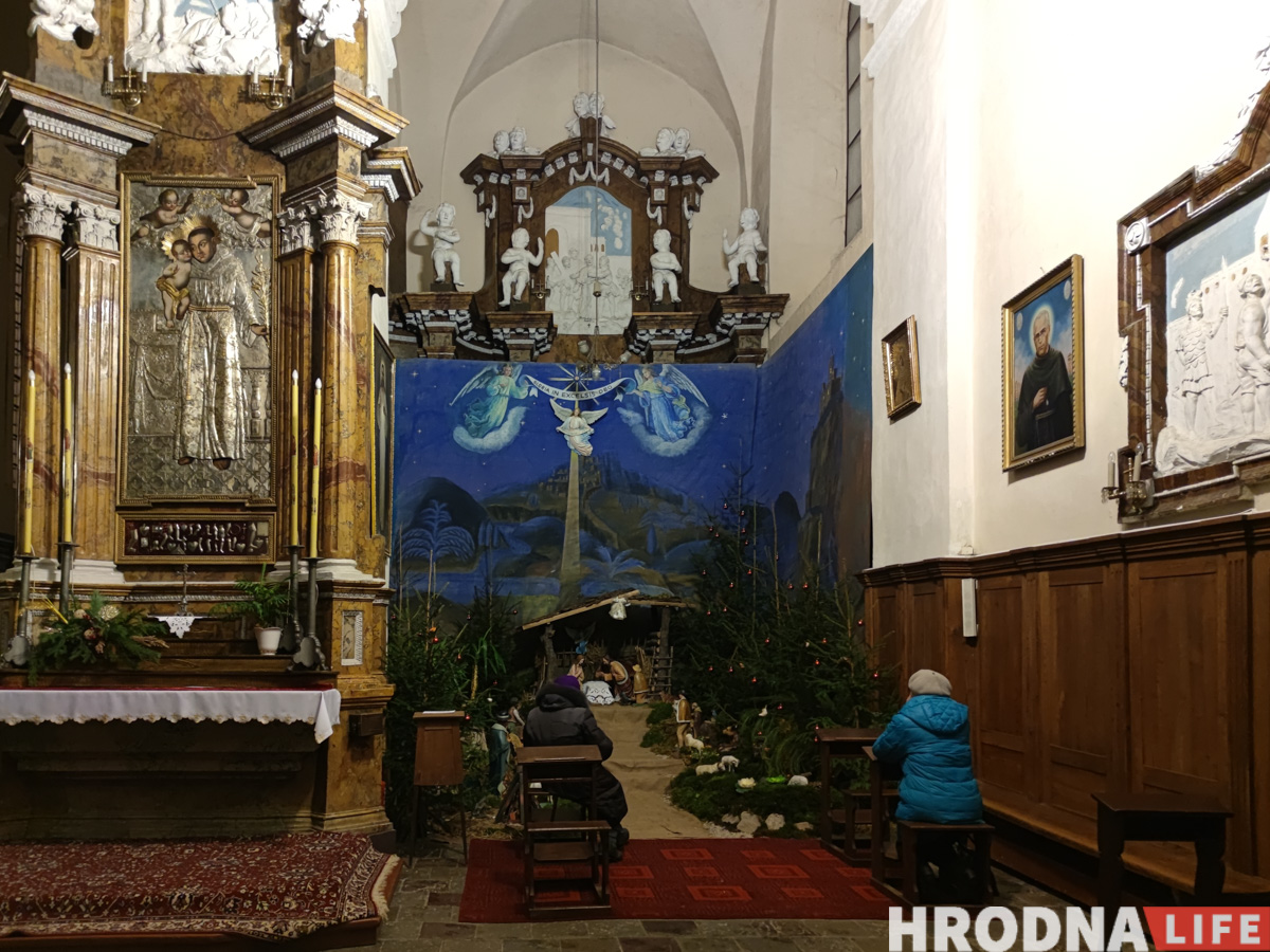 Механический вертеп во францисканском костеле — старейший в Беларуси. Его создал в 1960-е годы настоятель Аркадий Вальтас. Он придумал его, чтобы привлечь в костел больше детей. Но это было советское время, и вскоре механизм запретили включать. Восстановили вертеп в 2000-е годы. С тех пор его собирают перед Рождеством. Фигурки время от времени реставрируются, но основа остается старая.