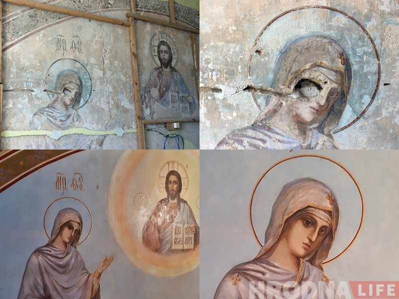 Над старинными росписями на территории Архиерейского подворья в Гродно работала в течение четырех месяцев семья Липских из Минска. Специалисты восстановили изображения святых точно так, как они были нанесены на стену в начале 19 века.