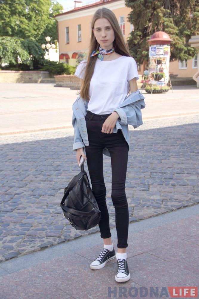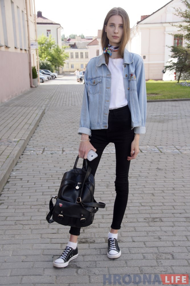 К белорусским магазинам я отношусь позитивно, все больше появляется интересных дизайнов –носки с интересными принтами, футболки. Сегодня на мне майка Твое, джинсы Zara, кеды и рюкзак со скидельского рынка, винтажная джинсовка, платок Элема.