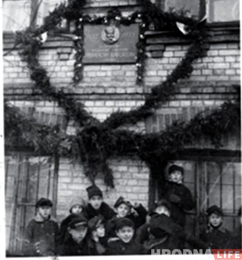 На протяжении 80 лет, проходя по улице Ленина, гродненцы наблюдали на стене старого учебного заведения черную доску со сбитой надписью. Буквы на ней прочитать было невозможно, так как их целенаправленно уничтожили. Предположительно, в 1939 году.