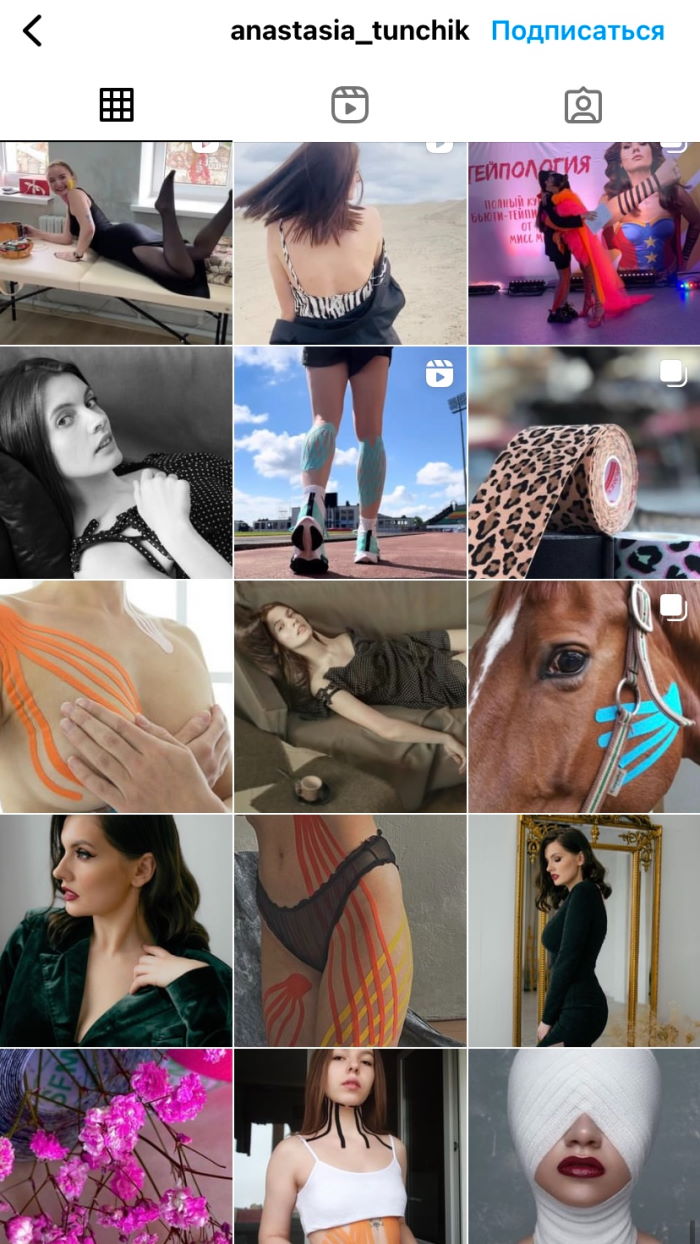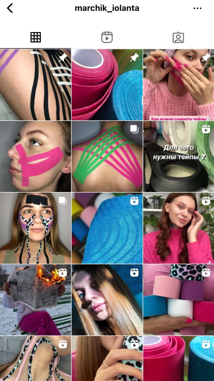 По запросу «Тейпы Гродно» Instagram выдает несколько десятков аккаунтов. Девушки, ведущие их, называют себя «тейпологами». Они обещают избавить от морщин и лишних сантиметров при помощи тейпов. Часто в пару к тейпированию в шапке профиля предлагают другие косметологические услуги. Например, массаж, шугаринг, ламинирование ресниц или коррекция бровей. Профили в Instagram выглядят ярко за счет разноцветных тейпов и необычных аппликаций на теле.