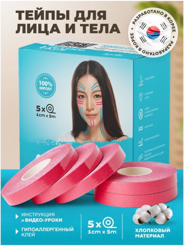 Это тканевая полоска из хлопка с добавлением эластана и внутренним клеевым слоем. Визуально тейпы похожи на широкий лейкопластырь в катушке. В современной косметологии и в медицине используют кинезиотейпы: они растягиваются в продольном направлении.