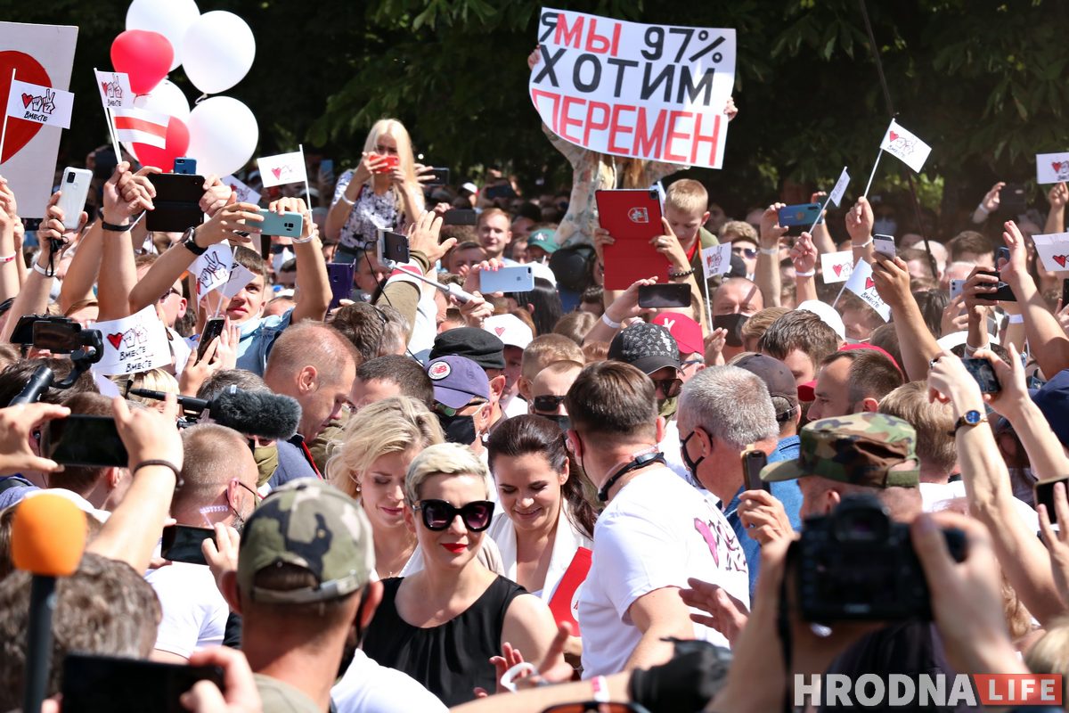 Кандидат в президенты Беларуси Светлана Тихановская 1 августа приехала в Гродно и выступила со своей командой в Коложском парке. Не менее 10 тысяч человек, по оценкам наблюдателей, собралось на предвыборный митинг кандидата. Это самое большое политическое собрание в городе за последнее время.