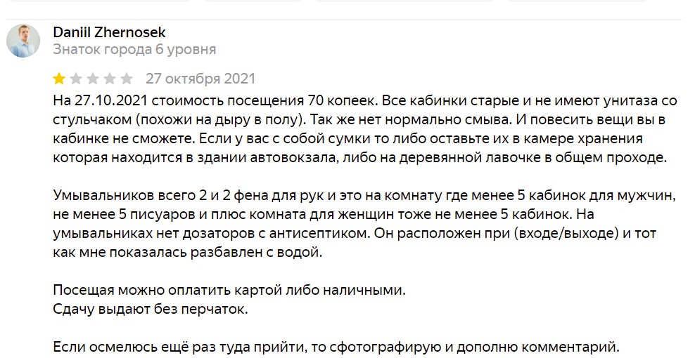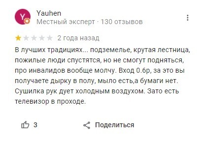 Неблагоприятные санитарные условия и отсутствие унитазов вынуждают людей оставлять на “Google Картах” и “Яндекс Картах” в основном отрицательные отзывы об общественных туалетах Гродно. Лучше всего выглядит туалет возле «Бакста» — там хорошие санитарные условия.
