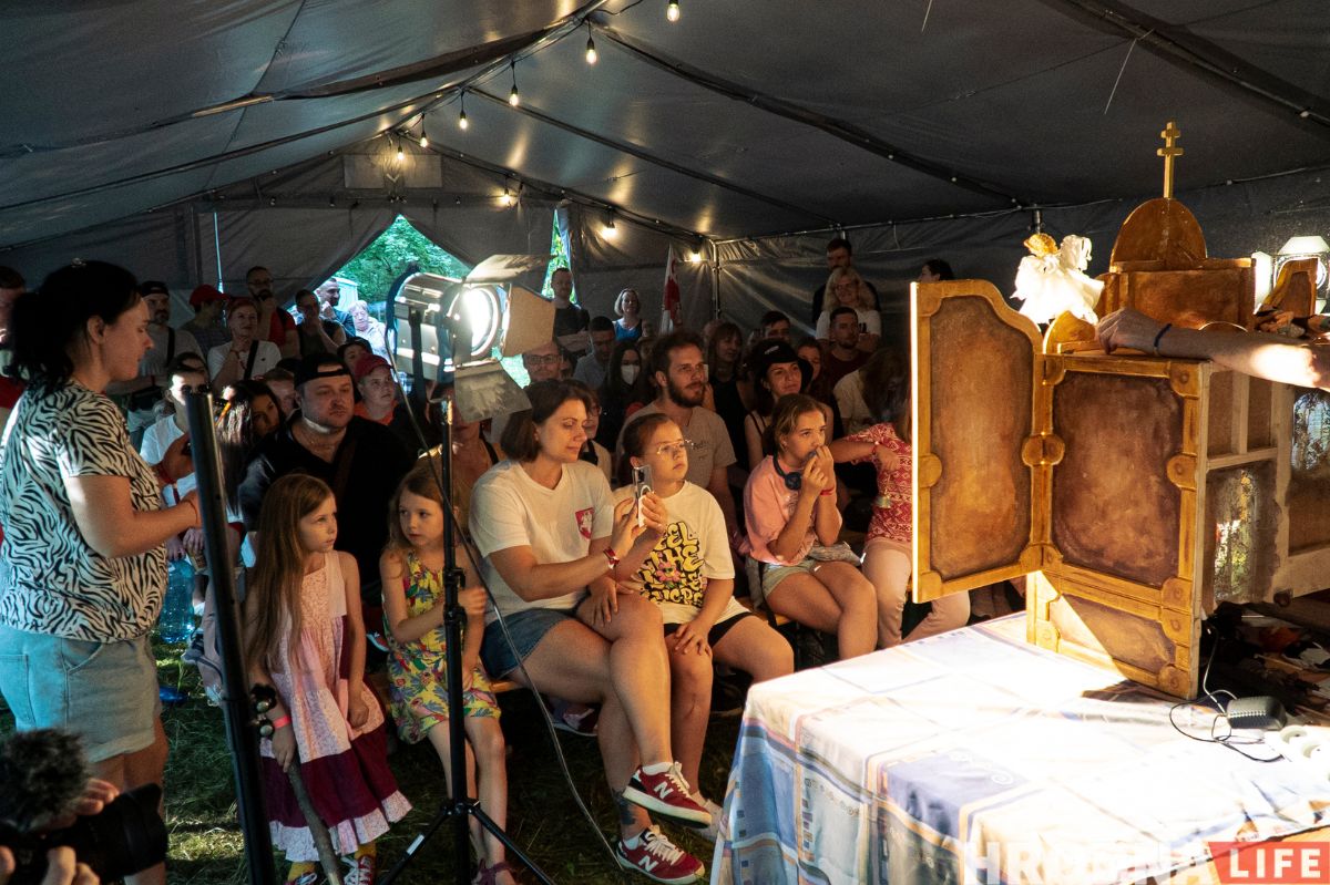 Добираться на поляну Борык, где исторически проходило “Басовішча”, а теперь проходит “Tutaka”, проще всего на автомобиле. Я доверяюсь друзьям с авто… и успешно пропускаю акцию солидарности с политзаключенными, выступление Маляваныча и встречу со Светланой Тихановской, которая заявлялась как одно из главных событий фестиваля.