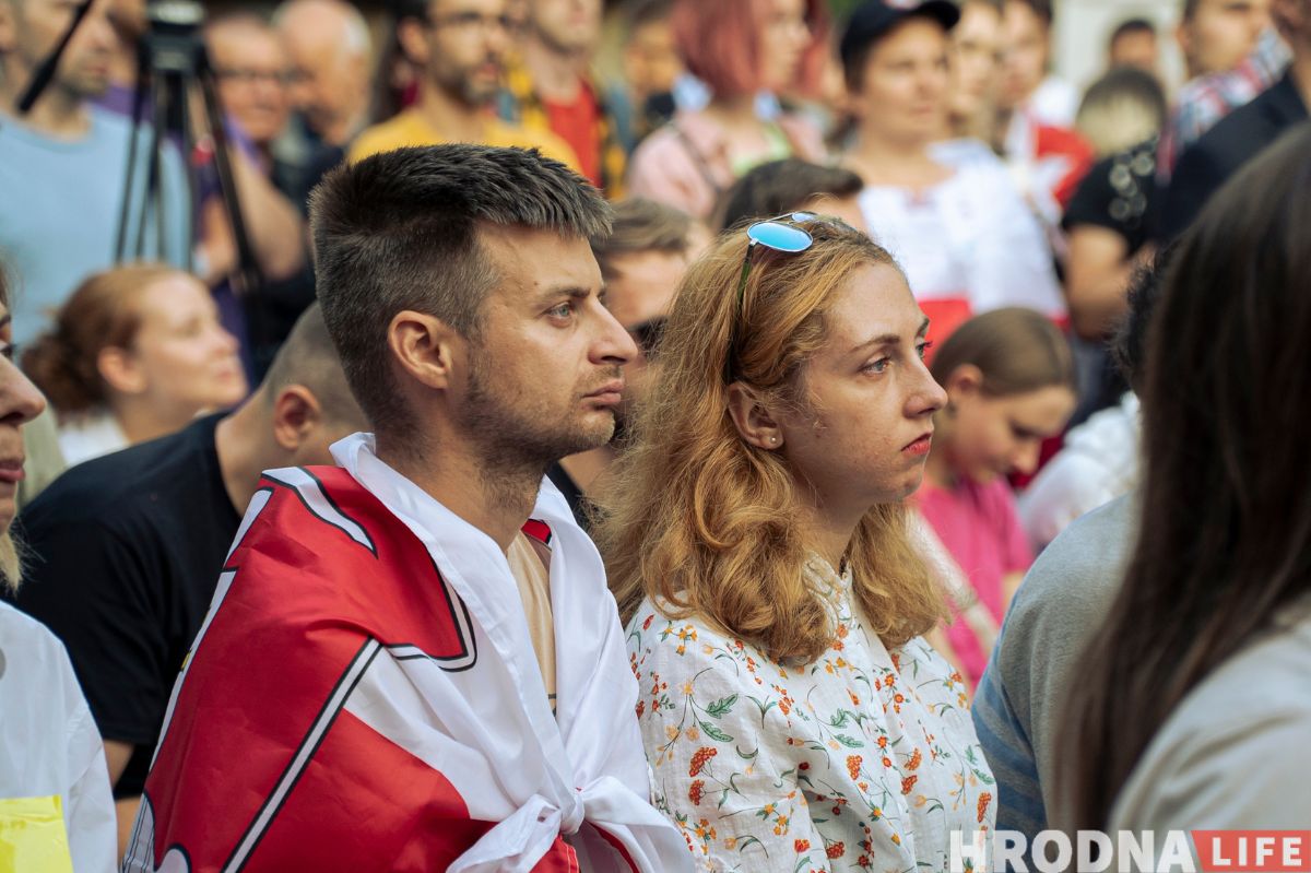 Меняю босоножки на кеды, чтобы в толпе мне не оттоптали ноги, и под крики “Жыве Беларусь” иду на концерт. В очереди в туалет слышны разговоры про сексуальную жизнь, необходимости платить 500 рублей за квартиру и выпить самогонки и “ромчыку”. Кто-то по-польски говорит с вокалистом Dzieciuki, а кто-то фотографируется с бывшим сотрудником “Гродно Азот”. Бывший силовик обнимается с бывшими политзаключенными.