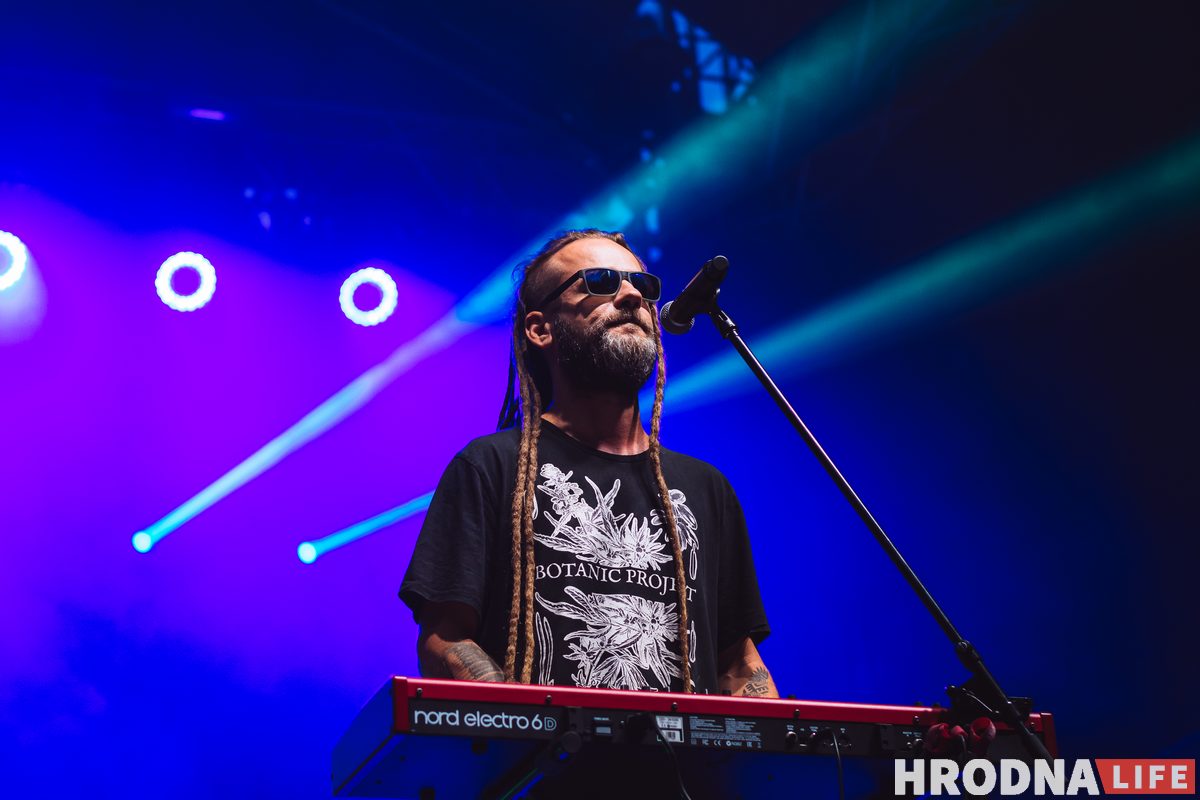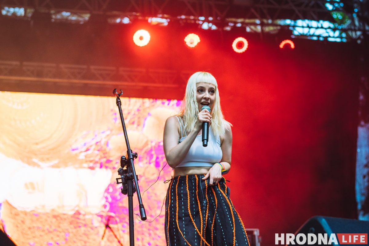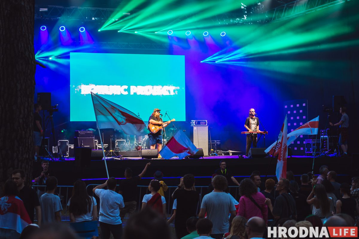 К главной сцене на концерт служба порядка не пропускает с алкоголем и бутылками воды объемом больше 0,5. Поэтому люди облепливают серый забор. Вокалистка группы Nochy прыгает, высоко задирая ноги. Botanic Project играют регги-вариант “А хто там ідзе?” и анонсируют новый альбом. Маргарита Левчук с начесом в образе задает музыкантам вопросы. Вокалистка Dlina Volny гипнотизирует низким голосом и плавными движениями. Юрий Стыльский из “Дай Дарогу” сбивается с белорусского на русский и приглашает девушек на сцену спеть песню про “20 см”. Люди становятся на лавки — не снимая обувь. Белорусы разворачивают огромный флаг.